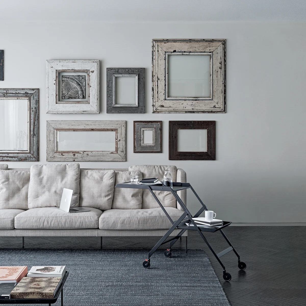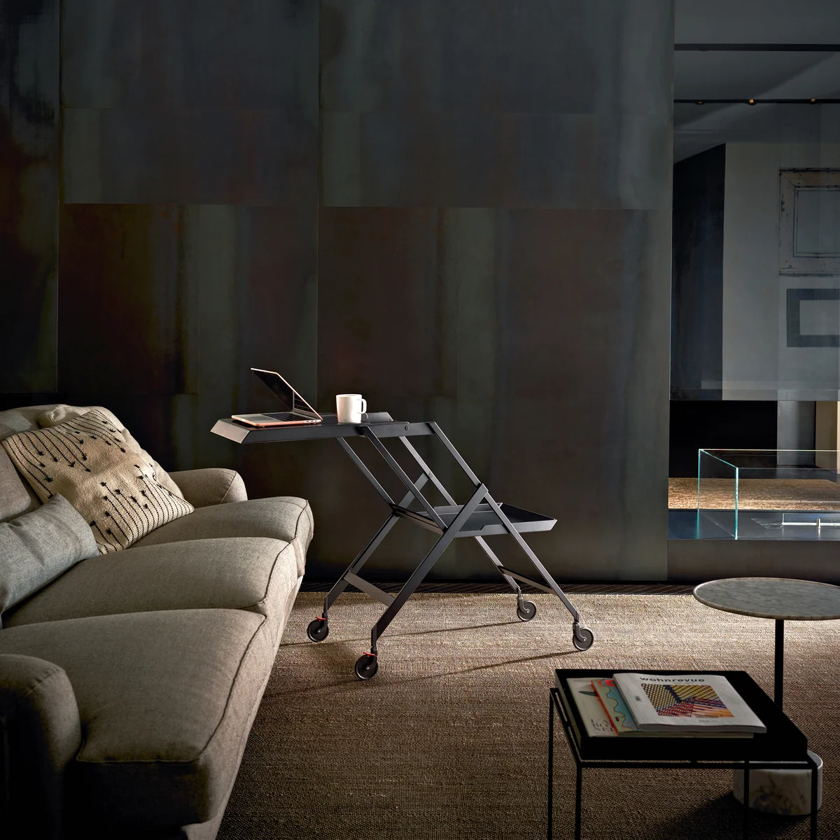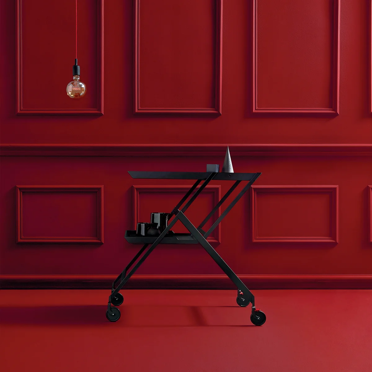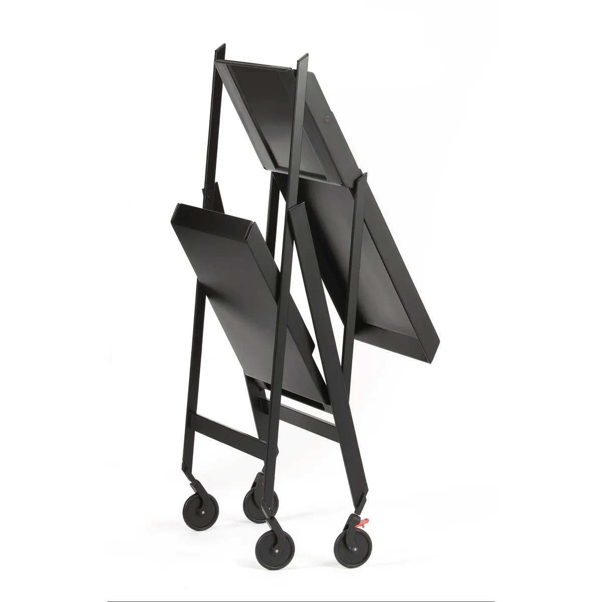 Basé sur le design de Richard Sapper dans les années 1970, la Plico Le chariot de service a été conçu par Alessi . L'élégant chariot de service est idéal comme mini-bar pour vos quatre murs ou pour servir des cocktails et des petites collations sur deux niveaux. Le petit chariot noir peut également être utilisé comme table d'appoint ou table de chevet. Il est particulièrement peu encombrant - lorsqu'il est replié, il se glisse derrière une porte ou un mur. Plico derrière une porte ou même dans de petites pièces de stockage sans aucun problème.