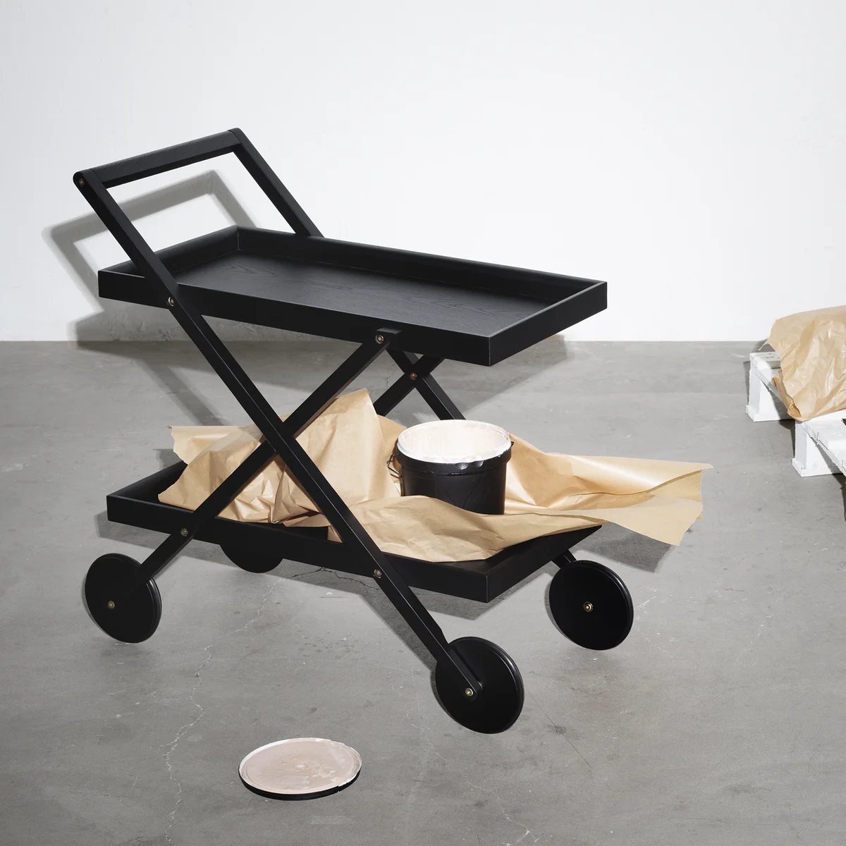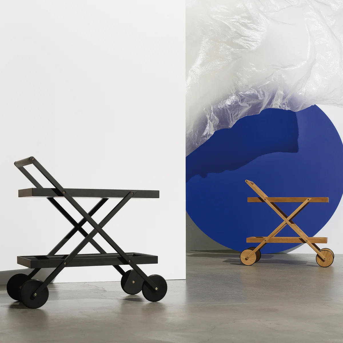 Gunilla Allard est l'un des designers de meubles les plus réputés de Suède. Alors qu'elle travaille habituellement avec du métal, elle est parvenue à créer la Exit Chariot d'une précision graphique similaire en chêne finement ouvragé. "C'est un défi pour moi de travailler avec le bois. On pourrait penser qu'il faut opter pour quelque chose de plus épais, mais le chariot de service est aussi délicat que possible. Le bois d'aspect naturel donne une sensation plus douce, plus chaleureuse, qui convient aussi bien aux environnements privés que publics."