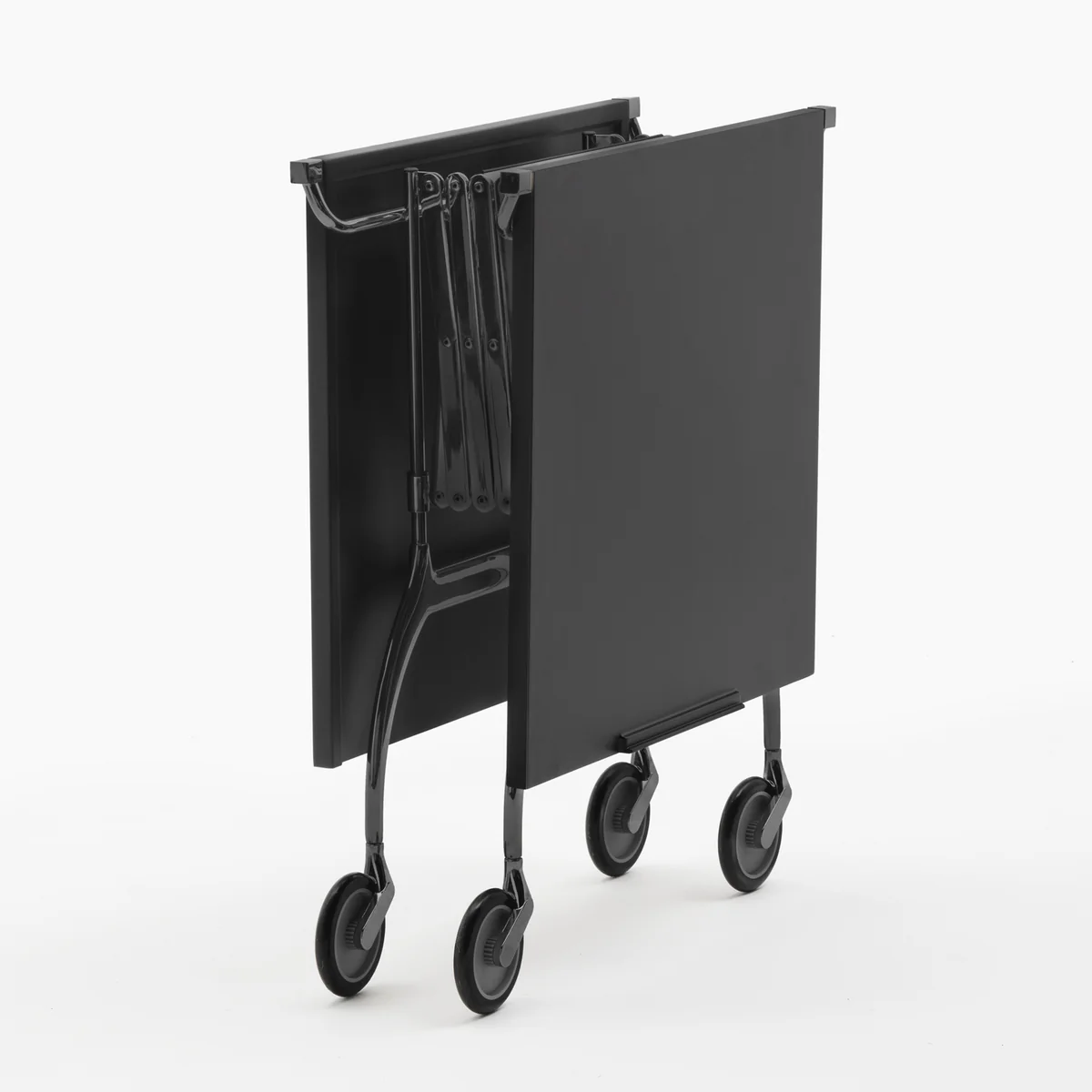 À l'aide d'un mécanisme de pliage et de ciseaux pratiquement combiné, le dépliage est rapide et facile. Si la table n'est pas nécessaire, elle peut être facilement garée avec un espace de stockage compact. Replié, l'élégant chariot de service s'intègre dans tous les espaces de la cuisine, de la salle à manger ou du bureau.