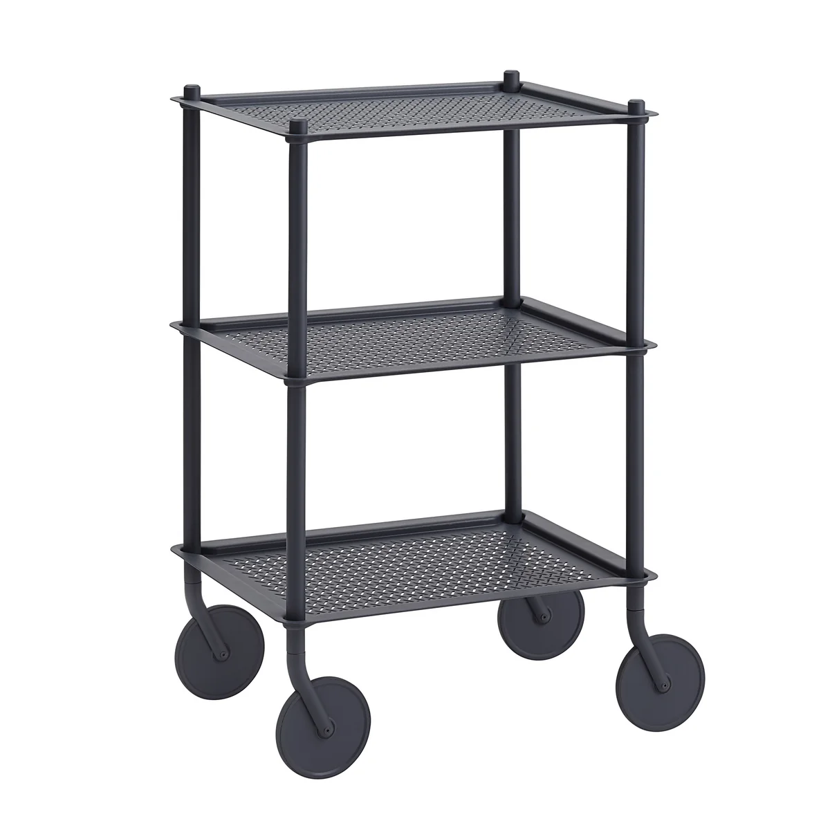 Le Flow Chariot d'appoint de Muuto apporte le concept de design fonctionnel dans un contexte moderne : ses étagères rainurées en métal gaufré lui confèrent une expression contemporaine, tandis que la flexibilité de ses roues permet à ses utilisateurs de le déplacer d'une pièce à l'autre.