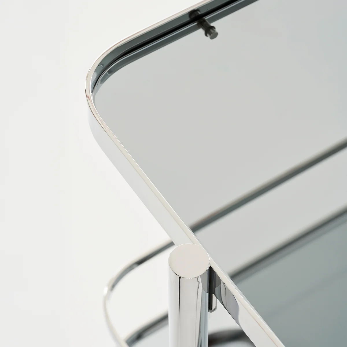 - Tube d'acier chromé, étagères en verre et détails de haute qualité