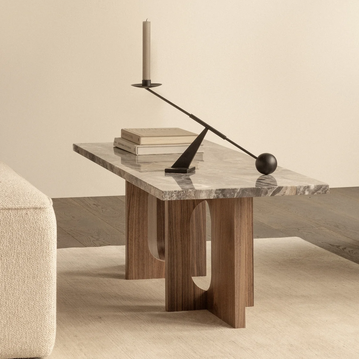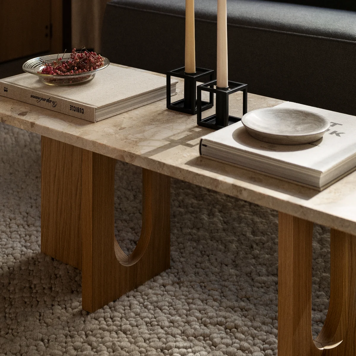Conçue à l'origine par l'architecte et designer norvégienne Danielle Siggerud comme une table moderne et polyvalente pour l'ancien showroom-café de Audo , cette table se caractérise par ses formes et ses matériaux. Androgyne table basse se caractérise par des silhouettes simples et des matériaux raffinés.