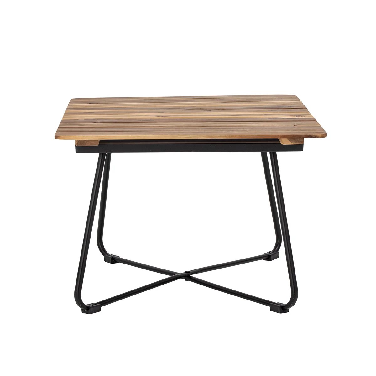 La table basse Hampton de Bloomingville est parfaite pour l'été. Le plateau de la table est en acacia, tandis que les pieds sont en métal noir, ce qui la rend bien adaptée à tout type de terrasse. Les éventuelles salissures s'enlèvent à l'eau chaude et au savon. L'entretien se fait par un léger ponçage et un traitement à l'huile. Lorsqu'elle n'est pas utilisée, la table basse doit être placée dans un endroit couvert.