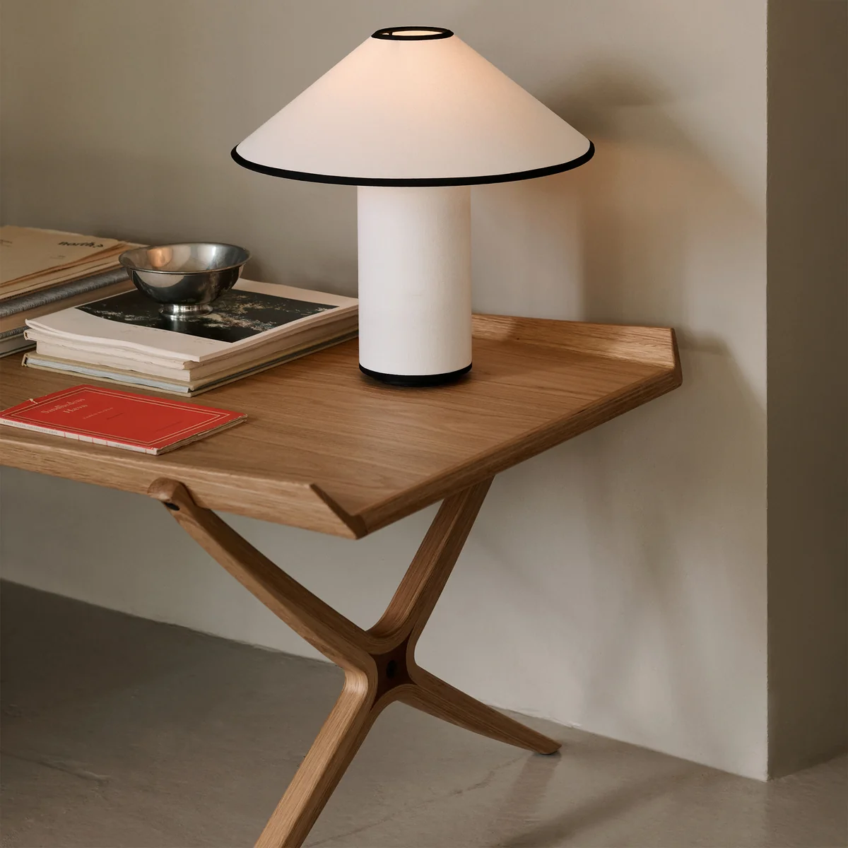 La table basse X de Hvidt & Mølgaard pour & Tradition est un chef-d'œuvre de l'artisanat scandinave. Conçue à l'origine en 1959, la table impressionne par son piètement en X caractéristique, inspiré des anciennes chaises pliantes égyptiennes. Le plateau de table en placage de chêne de haute qualité avec un bord élégamment formé ajoute une touche de raffinement au design, tandis que le piètement en acier noir assure la stabilité et l'esthétique moderne.