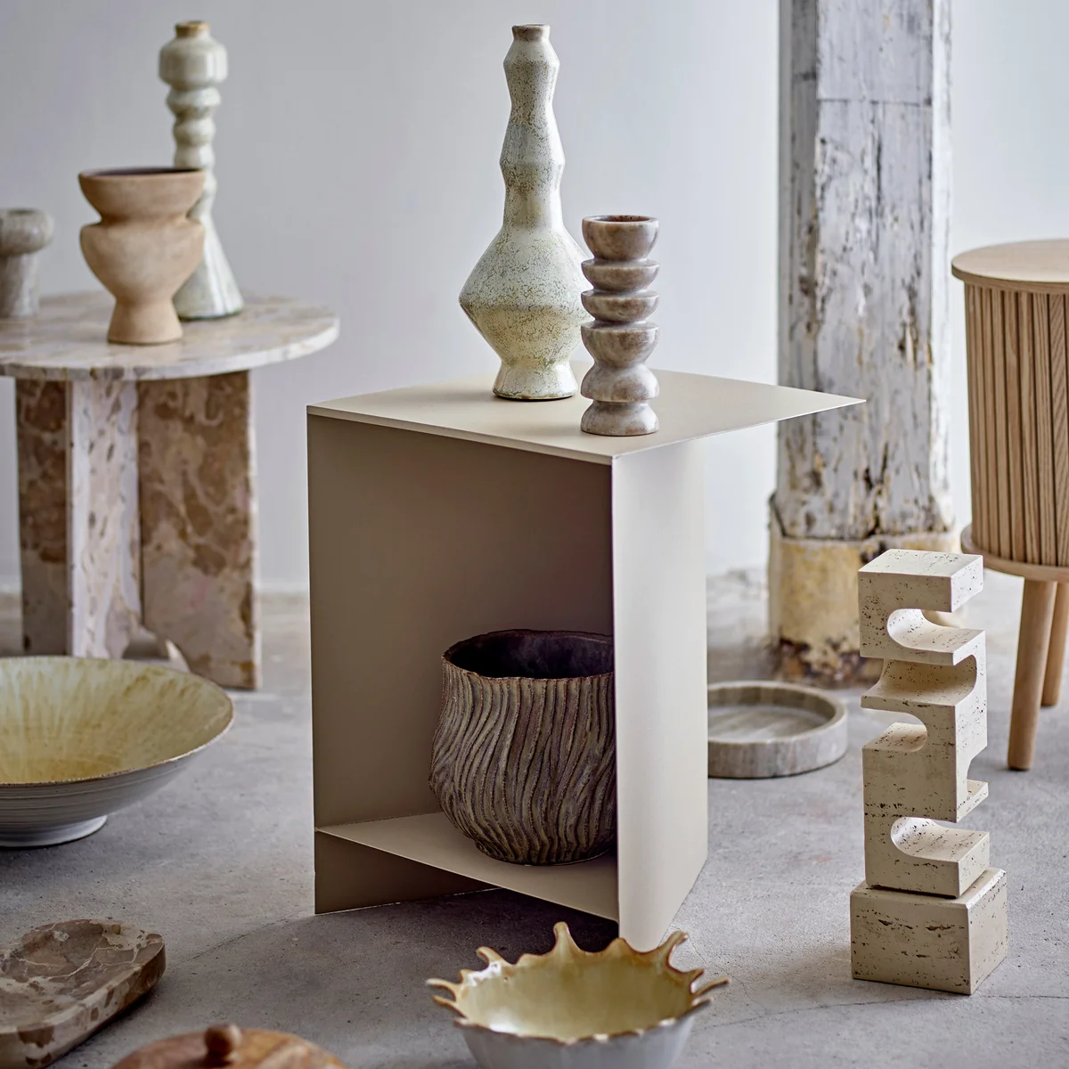 La table d'appoint Tasha de Bloomingville allie un design simple à une fonctionnalité pratique. Fabriquée en fer revêtu par poudre, la table se distingue par sa forme sculpturale et sa surface mate élégante. L'étagère intégrée sous le plateau de table rond offre un espace de rangement supplémentaire pour les livres, les magazines ou les petits objets du quotidien - parfait pour les espaces compacts ou comme meuble polyvalent élégant dans le salon, la chambre à coucher ou le couloir.