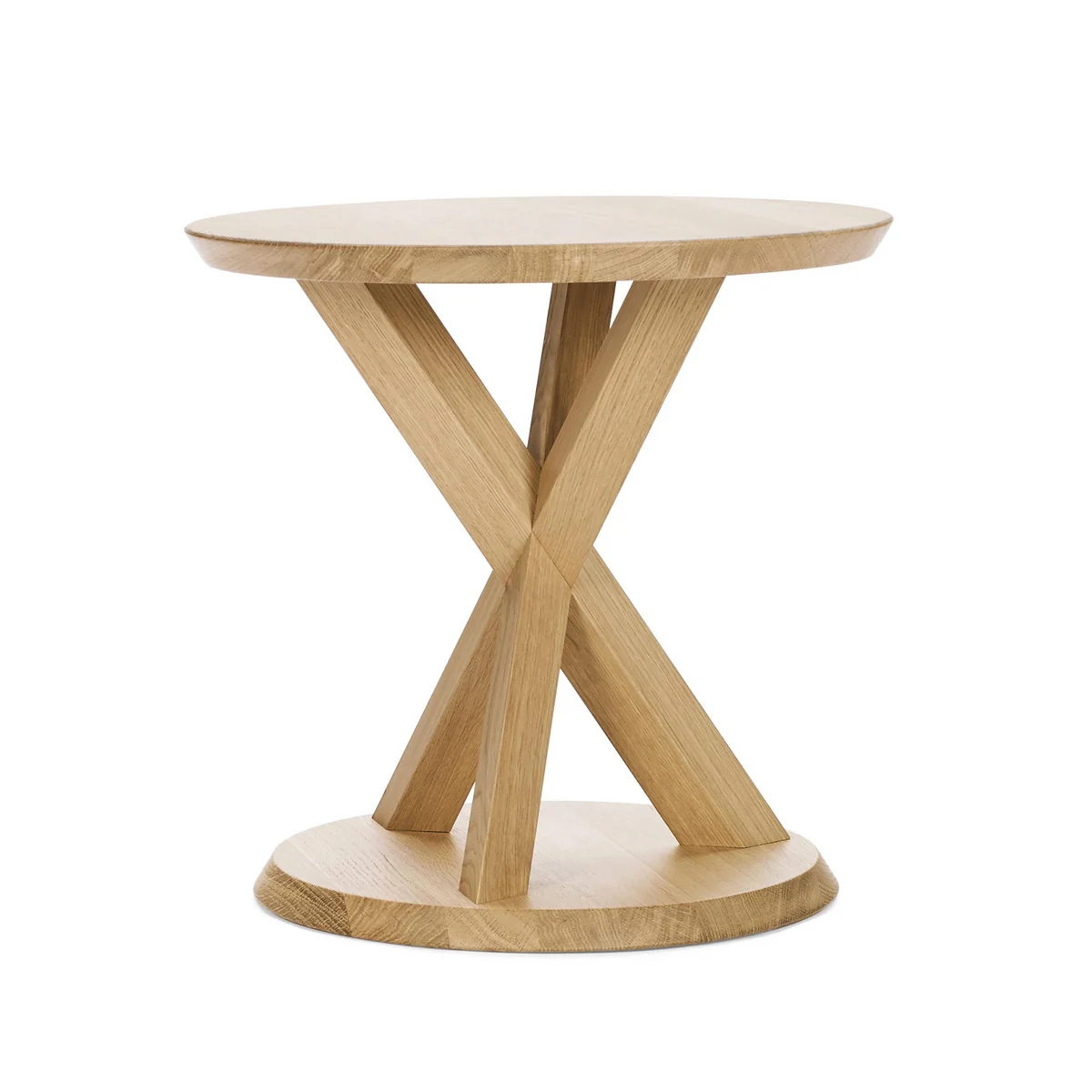 Le plateau de table en chêne massif confère à la table d'appoint une note chaleureuse et accueillante, tandis que le piètement en bois usiné avec précision assure stabilité et durabilité. L'association de lignes épurées et de matériaux naturels en fait un compagnon polyvalent - que ce soit comme table d'appoint à côté d'une lounge chair, comme rangement stylé dans le salon ou comme table de nuit discrète.
