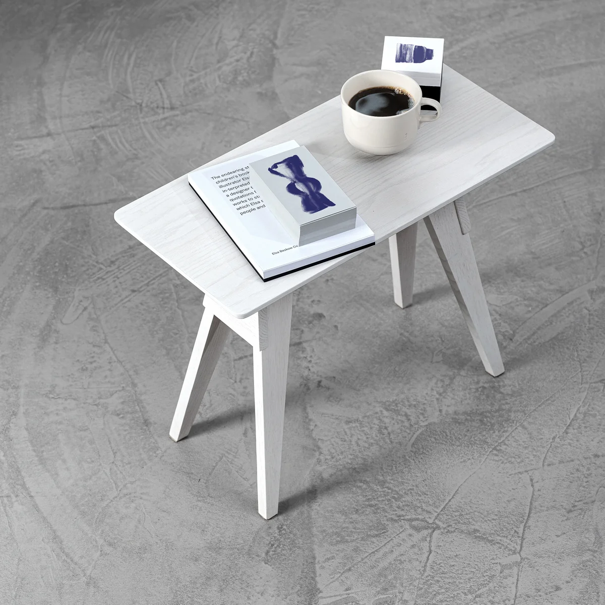 La table d'appoint est fabriquée en bois de chêne et est disponible en différentes couleurs.