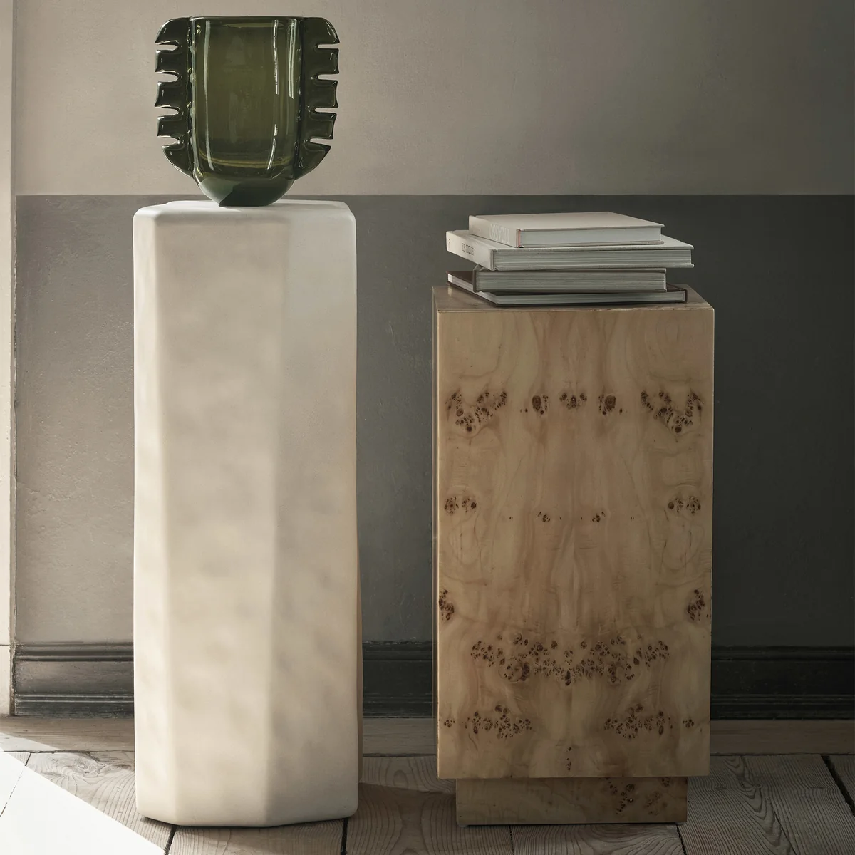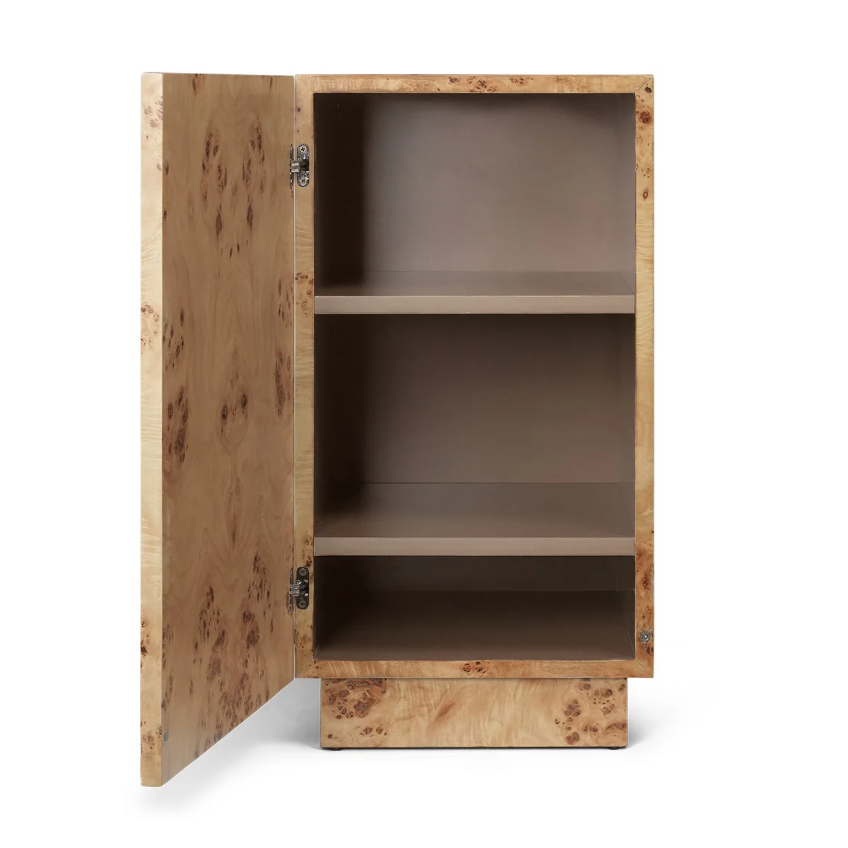 La table d'appoint Burl de Ferm Living tire son nom du bois de racine aux motifs exquis, certifié FSC™, dans lequel elle est fabriquée. Ce meuble élégant et adaptable peut être utilisé à la fois comme table de chevet et comme table d'appoint, répondant ainsi à différents besoins. Il dispose d'un compartiment de rangement caché avec une étagère réglable qui permet une adaptation individuelle aux objets stockés. Son design en forme de socle lui confère une touche d'élégance et rehausse l'aspect général de chaque pièce.