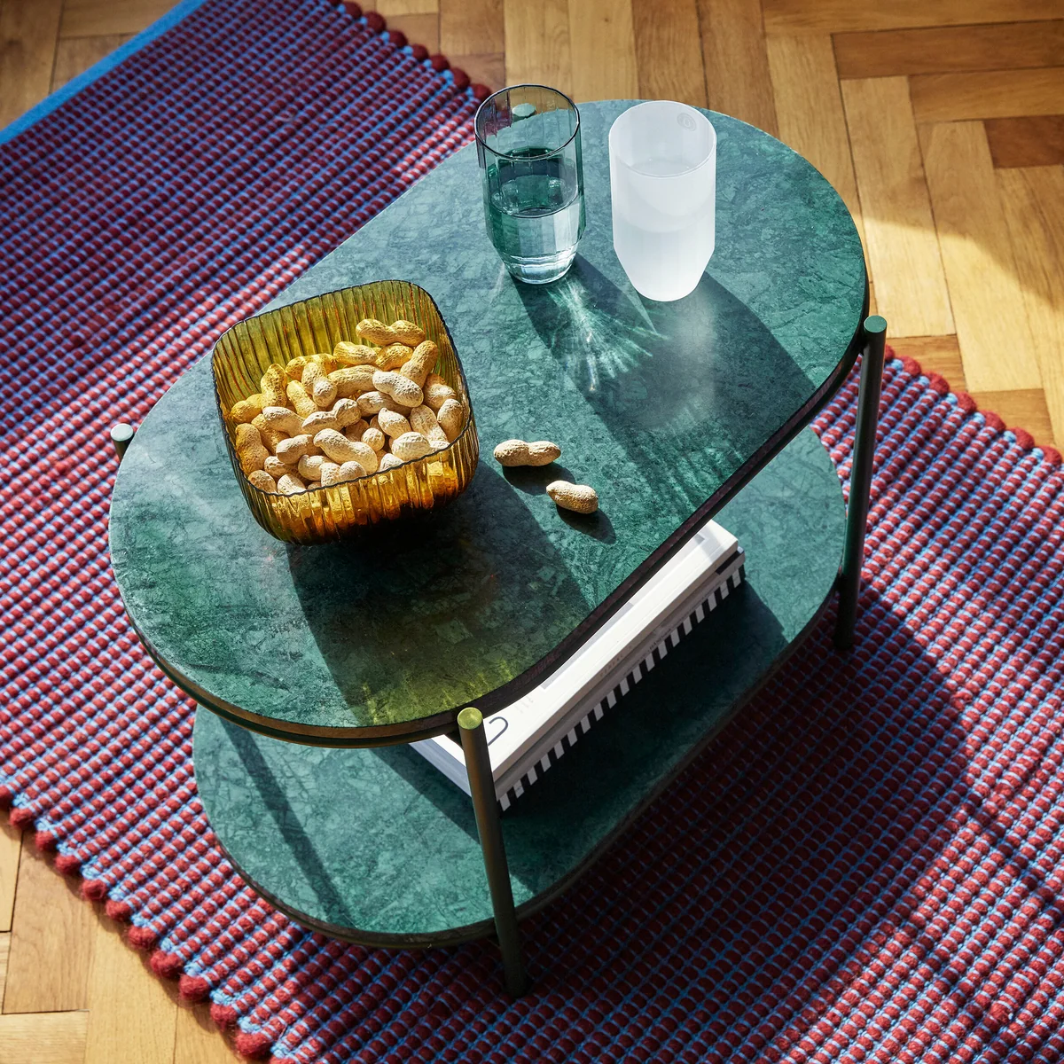 La table d'appoint en marbre de Hübsch Interior est idéale pour n'importe quelle ambiance avec son look minimaliste et en même temps sa couleur pop : Que ce soit dans le salon, le bureau ou le couloir, pour les livres, les magazines ou pour servir le café. Les deux plateaux de table peuvent également être utilisés pour présenter des décorations.