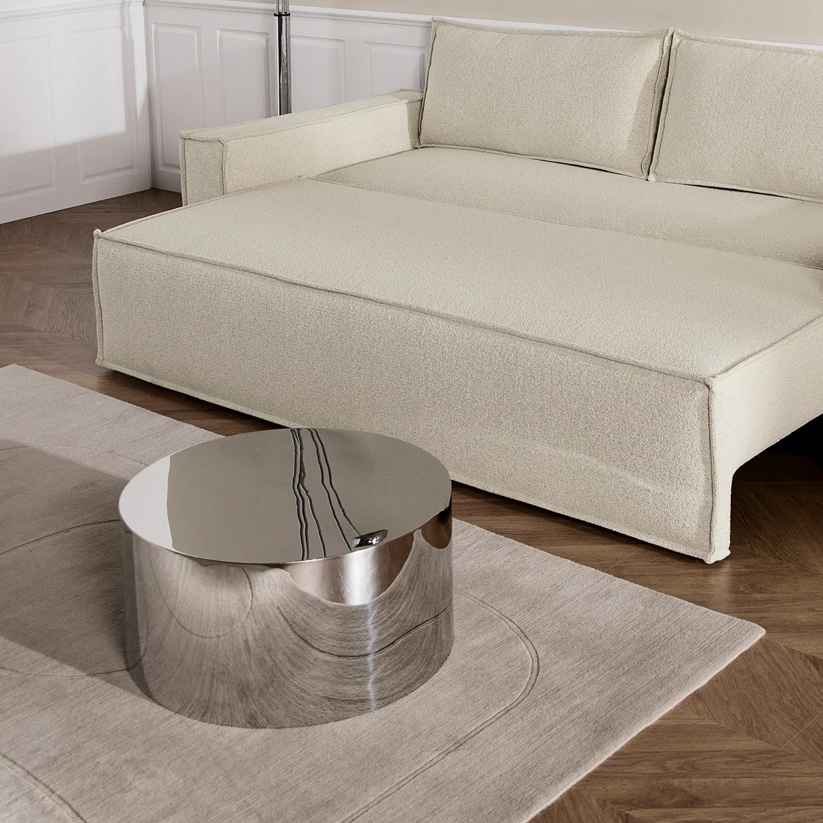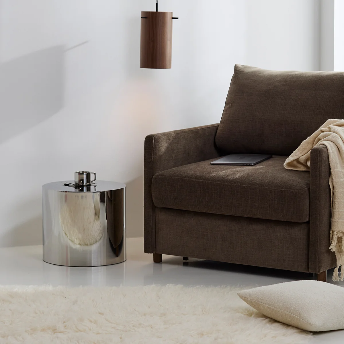 La table d'appoint Tin Drum de Innovation Living séduit par sa silhouette ronde et claire, qui respire le calme et l'équilibre. La forme continue sans interruption incarne un design minimaliste, tandis que la surface brillante apporte une touche de modernité.