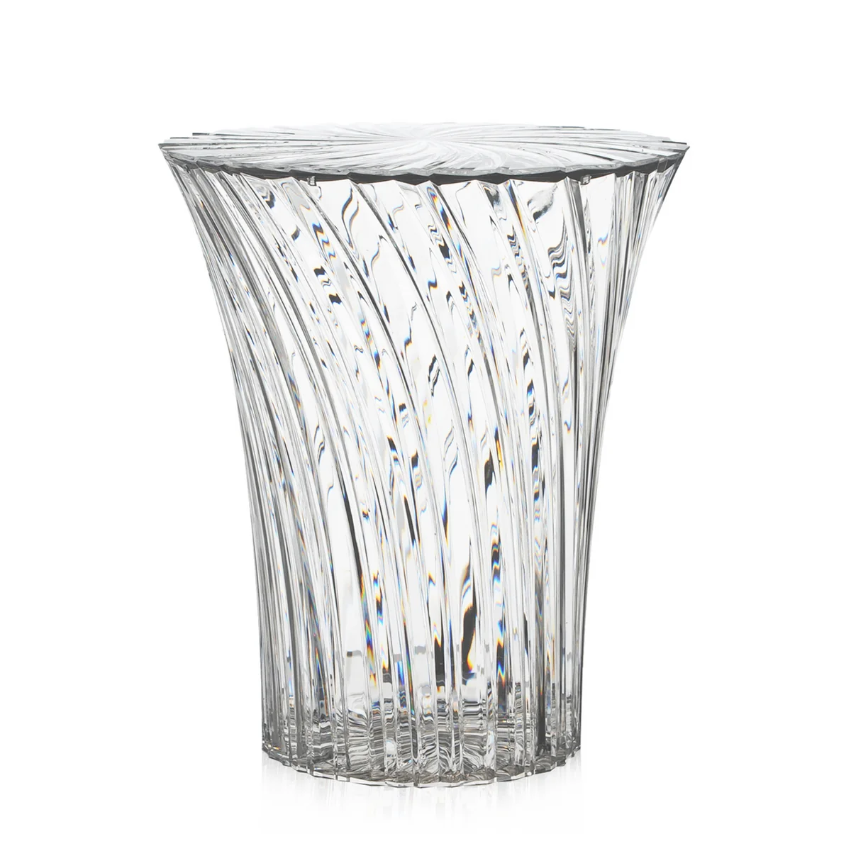 Sparkle par Tokujin Yoshioka pour Kartell est un tabouret et une table d'appoint en un. En PMMA avec des détails de pliage spéciaux, il convainc par son Sparkle par sa forme décorative et sa multifonctionnalité. Comme un tabouret Sparkle est toujours prêt pour les visiteurs spontanés et comme une table d'appoint devient Sparkle à côté du lit ou du canapé. Particulièrement pratique Sparkle par le couvercle amovible. Les couvertures intérieures, les livres, les jouets et bien d'autres choses encore peuvent être rangés de manière ordonnée et peu encombrante.