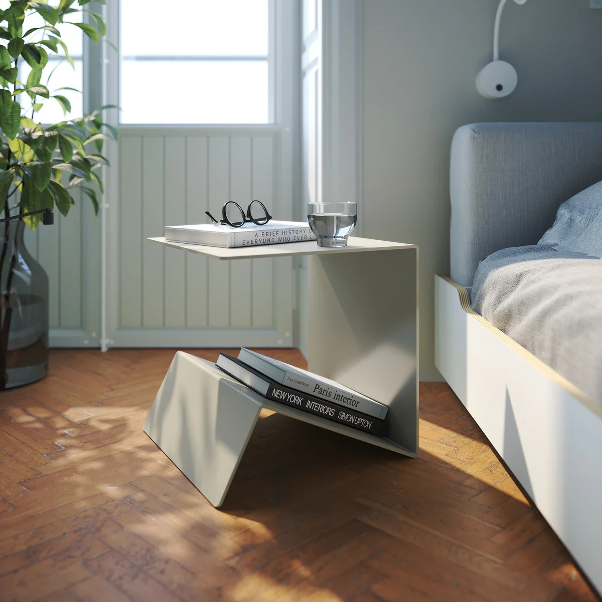 La table d'appoint Buk du designer Michael Hilgers allie un design minimaliste à une flexibilité maximale. Grâce à sa construction raffinée et pliée, la table peut être facilement retournée et offre ainsi différentes possibilités d'utilisation : comme bibliothèque, petite étagère, support pour l'ordinateur portable ou même comme pupitre à musique élégant. Fabriqué en aluminium de 5 mm d'épaisseur, Buk est robuste, durable et disponible en différentes couleurs revêtues par poudre.