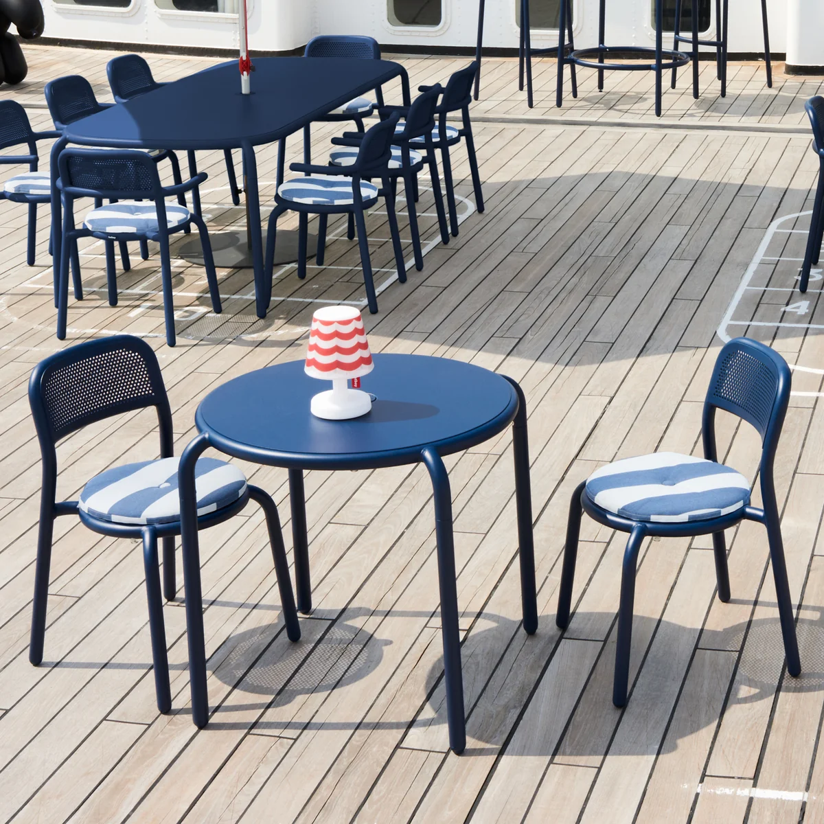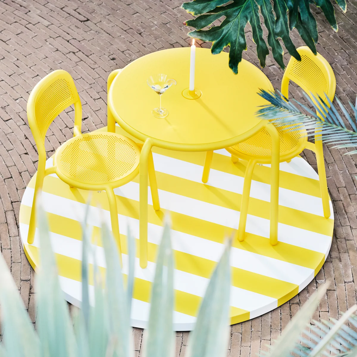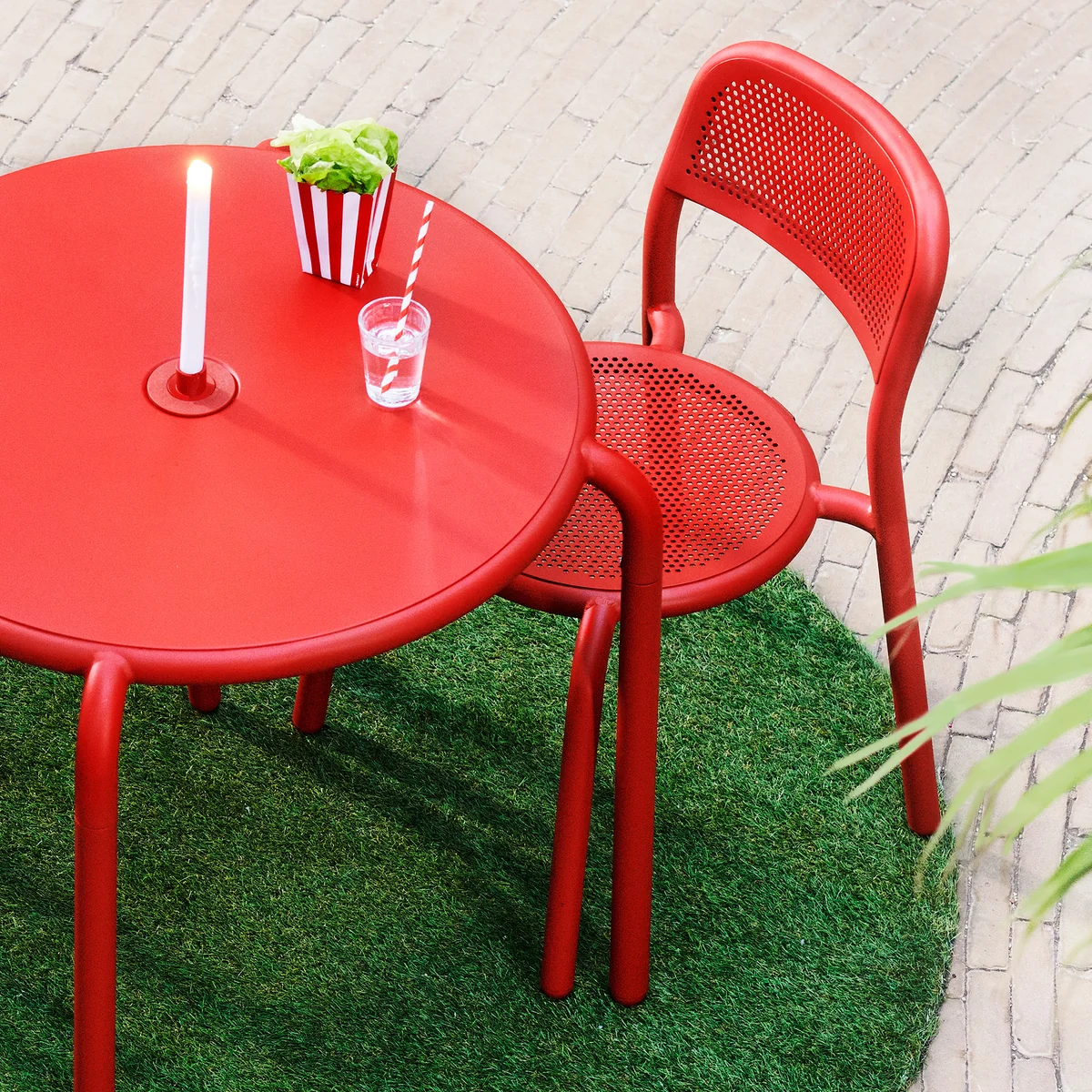 La table ronde Toní Bistreau de Fatboy est un compagnon idéal sur la terrasse, sur le balcon, dans le jardin ou même à l'intérieur. L'entrée pratique (41 mm) offre la possibilité d'encastrer le parasol adapté Fatboy - Stripesol. On peut ainsi profiter confortablement de son repas à l'ombre. Mais même sans parasol, la table Fatboy Bistreau attire tous les regards. Dans ce cas, l'entrée pratique du parasol se ferme simplement avec le bouchon ou se met en scène avec style grâce au bougeoir décoratif.