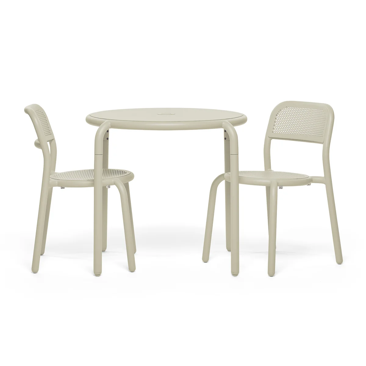 La table ronde Toní Bistreau de Fatboy est un compagnon idéal sur la terrasse, sur le balcon, dans le jardin ou même à l'intérieur. L'entrée pratique (41 mm) offre la possibilité d'encastrer le parasol adapté Fatboy - Stripesol. On peut ainsi profiter confortablement de son repas à l'ombre. Mais même sans parasol, la table Fatboy Bistreau attire tous les regards. Dans ce cas, l'entrée pratique du parasol se ferme simplement avec le bouchon ou se met en scène avec style grâce au bougeoir décoratif.