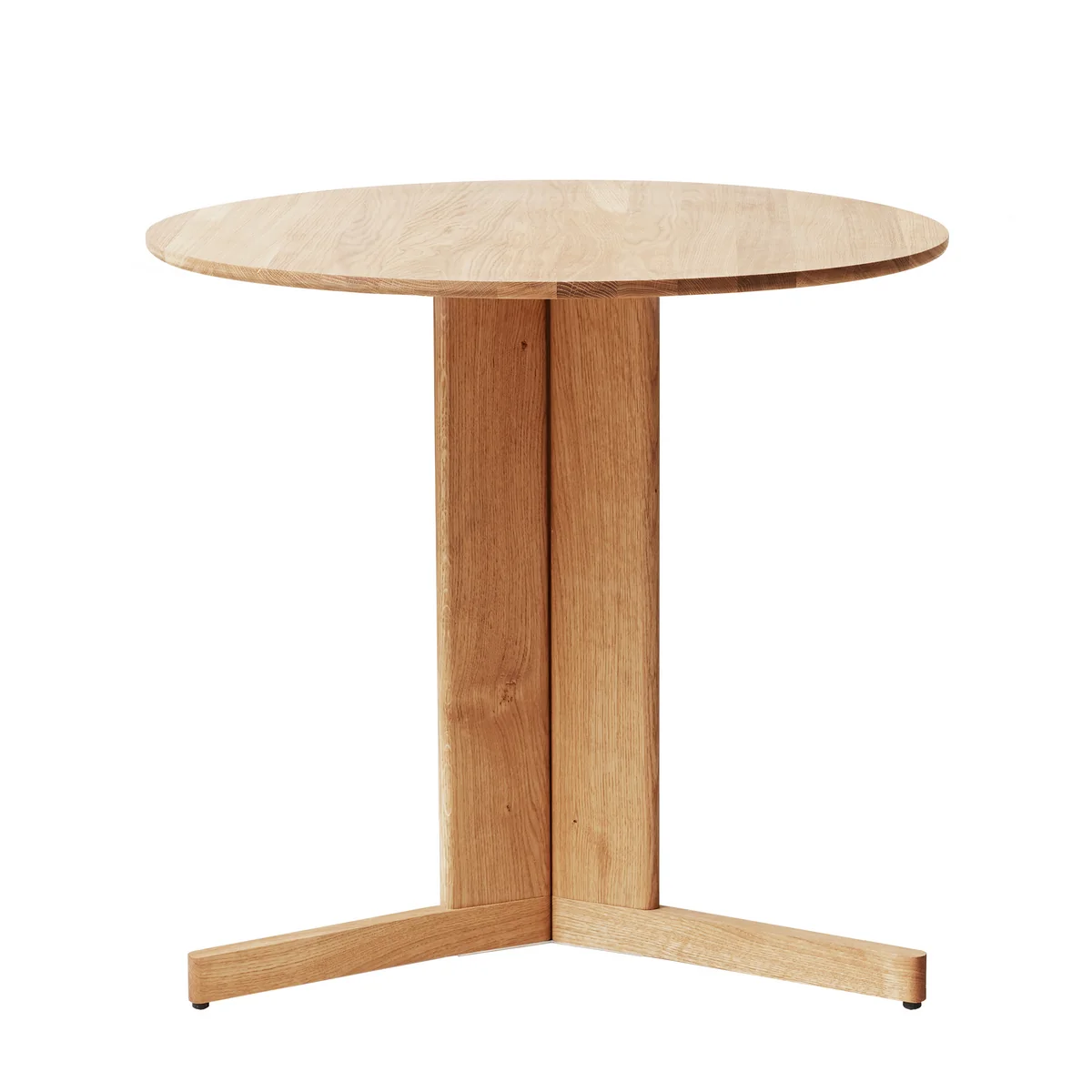 La table Trefoil table de Form & Refine est une table ronde en bois unique en son genre. Trois éléments de pied solides se rejoignent sous le plateau de table et forment un contraste de bon goût entre légèreté et densité. Ce design visuellement complexe est complété par un look merveilleusement scandinave. La table Trefoil table peut être utilisée comme table de salle à manger, dans le salon, la cuisine ou le bureau. Particulièrement astucieux : grâce au design peu encombrant, toutes les personnes assises à la table ont suffisamment d'espace pour les jambes. Le design a été conçu par le duo de designers danois Herman Studio.