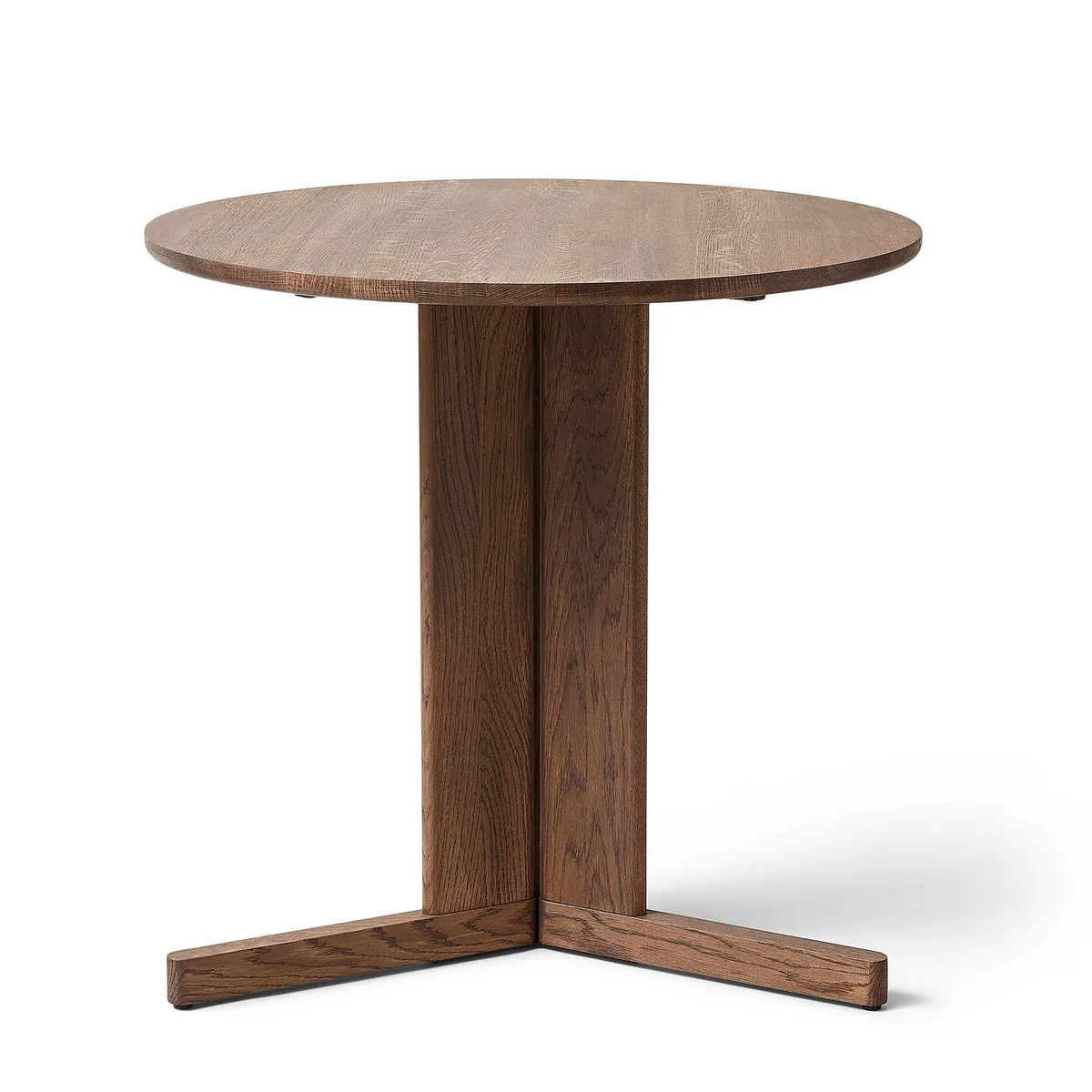 La table Trefoil table de Form & Refine est une table ronde en bois unique en son genre. Trois éléments de pied solides se rejoignent sous le plateau de table et forment un contraste de bon goût entre légèreté et densité. Ce design visuellement complexe est complété par un look merveilleusement scandinave. La table Trefoil table peut être utilisée comme table de salle à manger, dans le salon, la cuisine ou le bureau. Particulièrement astucieux : grâce au design peu encombrant, toutes les personnes assises à la table ont suffisamment d'espace pour les jambes. Le design a été conçu par le duo de designers danois Herman Studio.