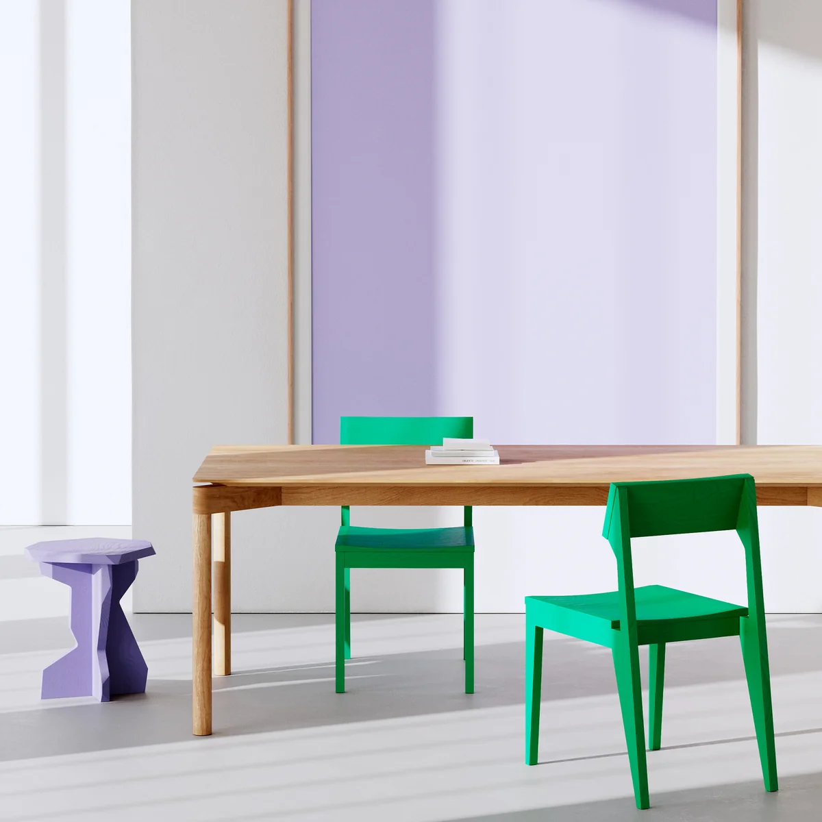 La table a été conçue à Berlin et fabriquée en Allemagne. Le bois de chêne est ciré et provient de forêts certifiées FSC® en Allemagne et en Autriche.