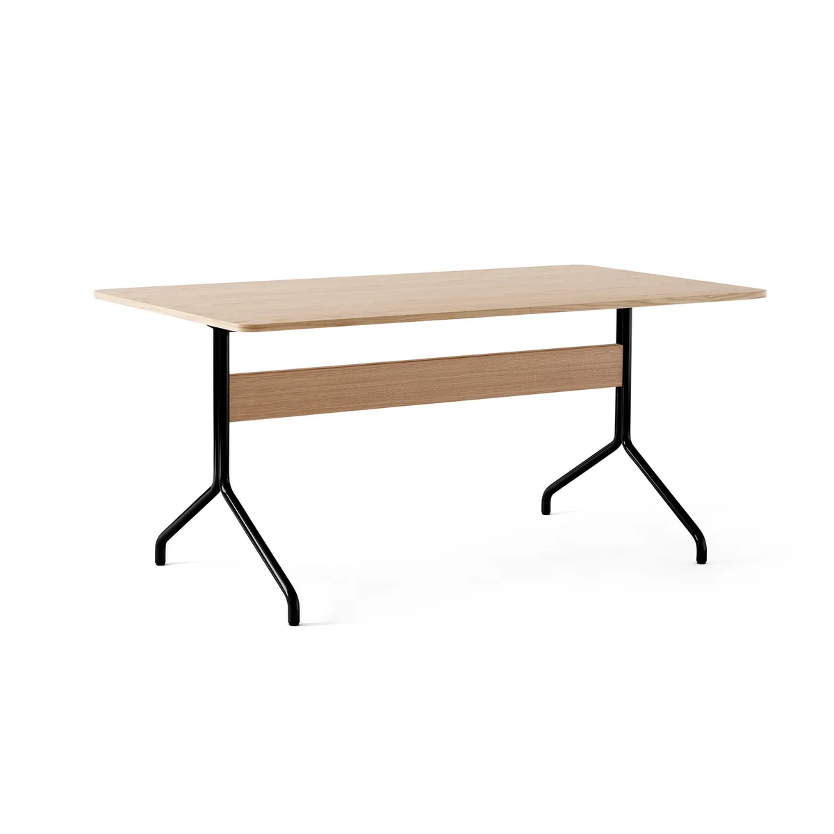 La table de salle à manger Pavilion Dining de la maison danoise & Tradition peut être utilisée de différentes manières dans l'habitat. Selon le modèle, la table offre un espace optimal pour les invités les plus chers. Outre la variante classique dans le salon, elle peut également être utilisée comme bureau dans le bureau. Pavilion se compose d'un plateau de table revêtu de lionoleum avec des bords plaqués. Les pieds sont fabriqués à partir de tubes d'acier courbés. Le panneau arrière de la table est fabriqué en placage moulé par compression. Disponible en différentes tailles et variantes de bois.