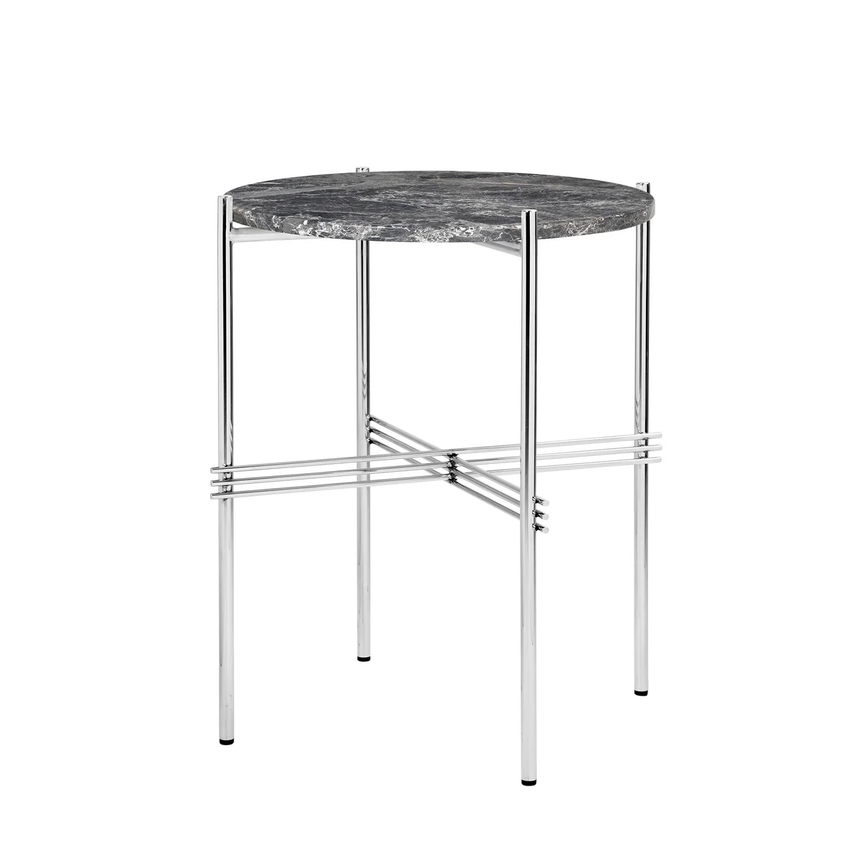 La table a été conçue par GamFratesi pour le célèbre restaurant The Standard à Copenhague, d'où provient non seulement l'inspiration pour le nom de la table, mais aussi pour l'esthétique et le choix des matériaux. La table TS est composée d'un piètement en acier noir ou laiton et d'un plateau rond en marbre de différentes couleurs ou en verre noir ou blanc. De plus, la table est disponible en différentes hauteurs avec des plateaux de différentes tailles qui se combinent à merveille.