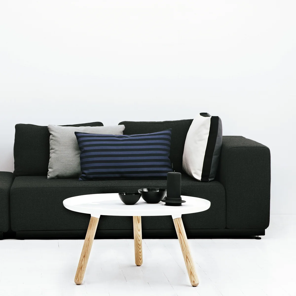 L'essence de la table Tablo réside dans l'interaction de deux matériaux aux expressions différentes, dont la combinaison aboutit à un design élégant et attrayant. Le bord de la table, raffiné et de forme précise, brise la forme ronde - le résultat est une table minimaliste sans détails superflus.