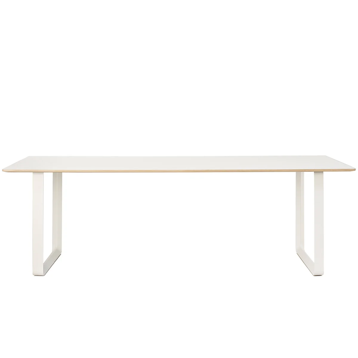 La table 70/70 fut déssinée par le Designteam TAF Architects en 2013 pour la société Muuto. Le design minimaliste et l'expression lumineuse et aérée créent une image d'ensemble harmonieuse. Le design réduit à l'essentiel dans sa continuïté contraste avec les détails subtiles du plateau et le piètement anguleux.