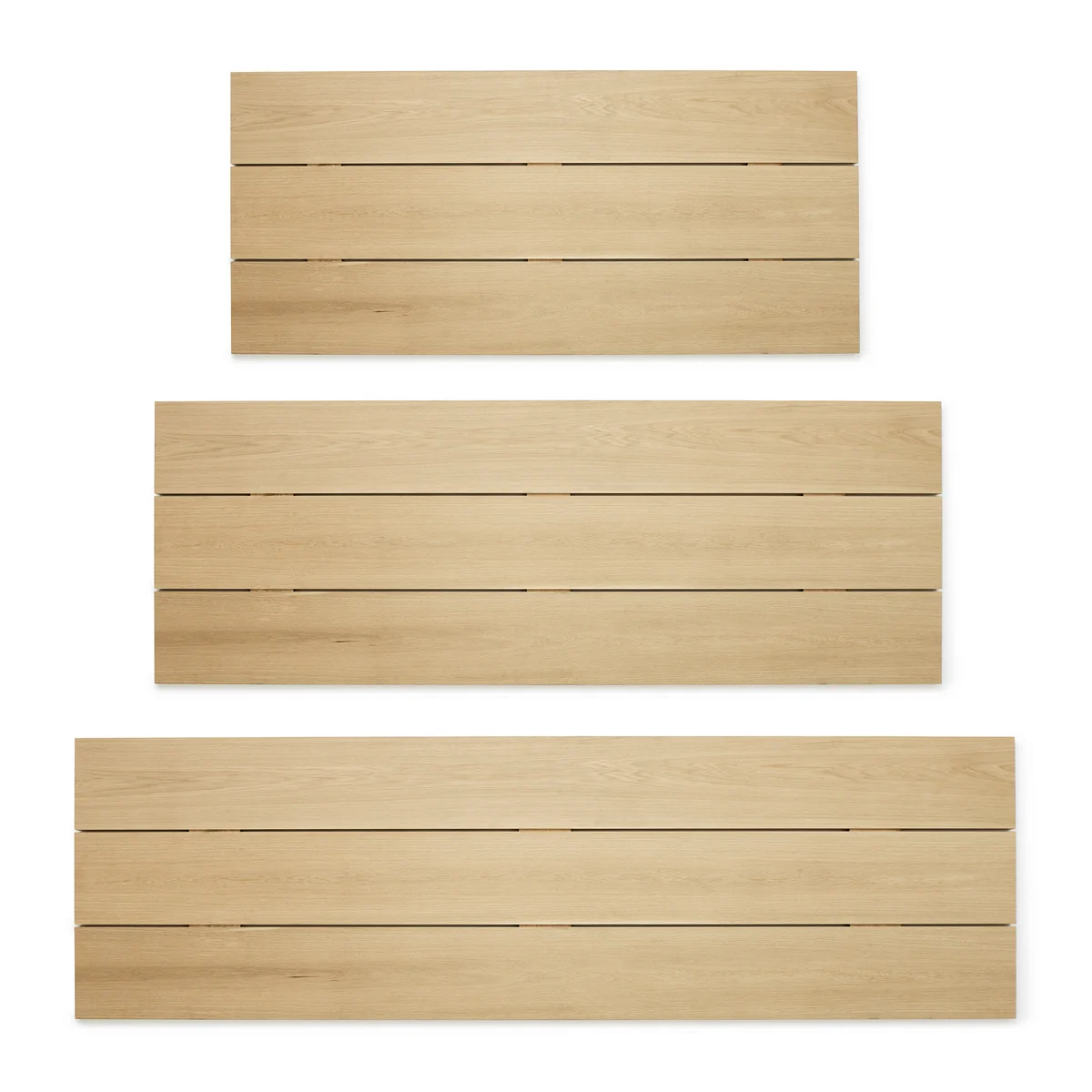 La table Slice de Hans Toft Hornemann pour Normann Copenhagen est une table de repas au look classique mais néanmoins séduisant et à la forme simple, épurée. Trois grandes et larges planches forment le plateau de table. Les minces espaces entre les planches de bois sont les éléments qui donnent à la table Slice son caractère unique, léger. Le design discret, typique du style scandinave, confère à la table en bois un look à la fois massif et contemporain.