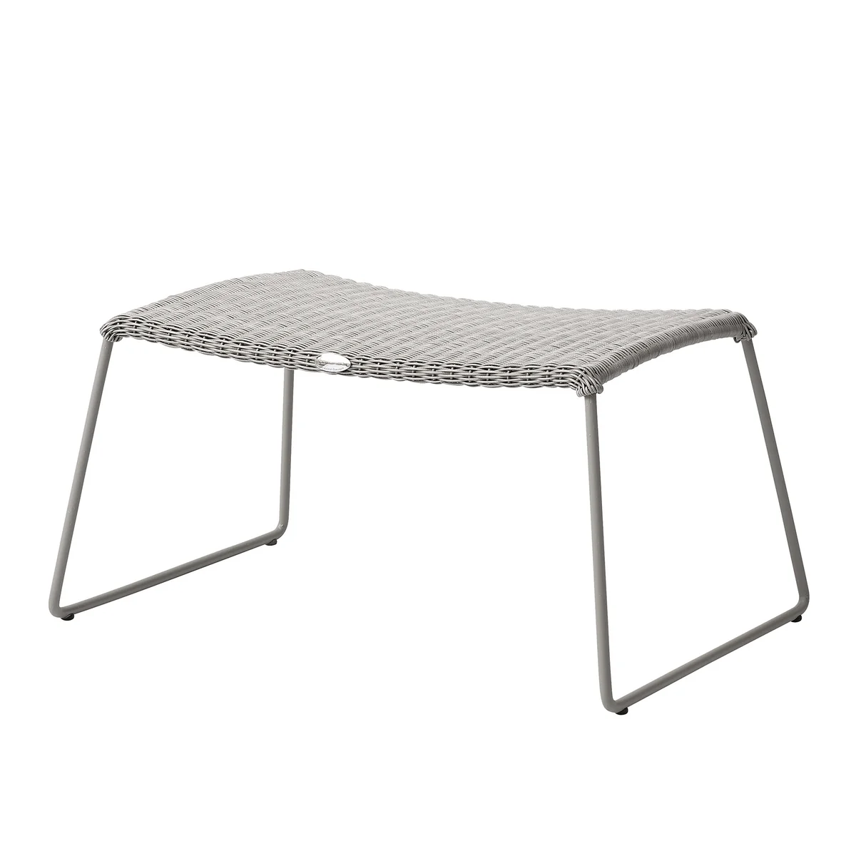 Le tabouret peut servir de siège flexible ou de repose-pieds. Le piètement à patins est fabriqué en acier revêtu par poudre. L'assise tressée à la main est en fibre Cane-line de polyéthylène résistante aux intempéries. Ainsi, le tabouret est non seulement facile à entretenir, mais il peut également rester à l'extérieur toute l'année.
