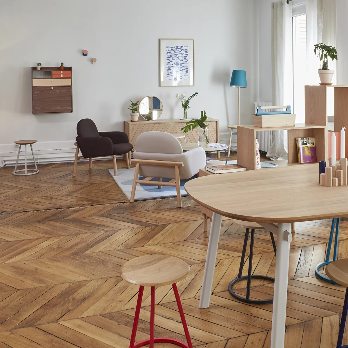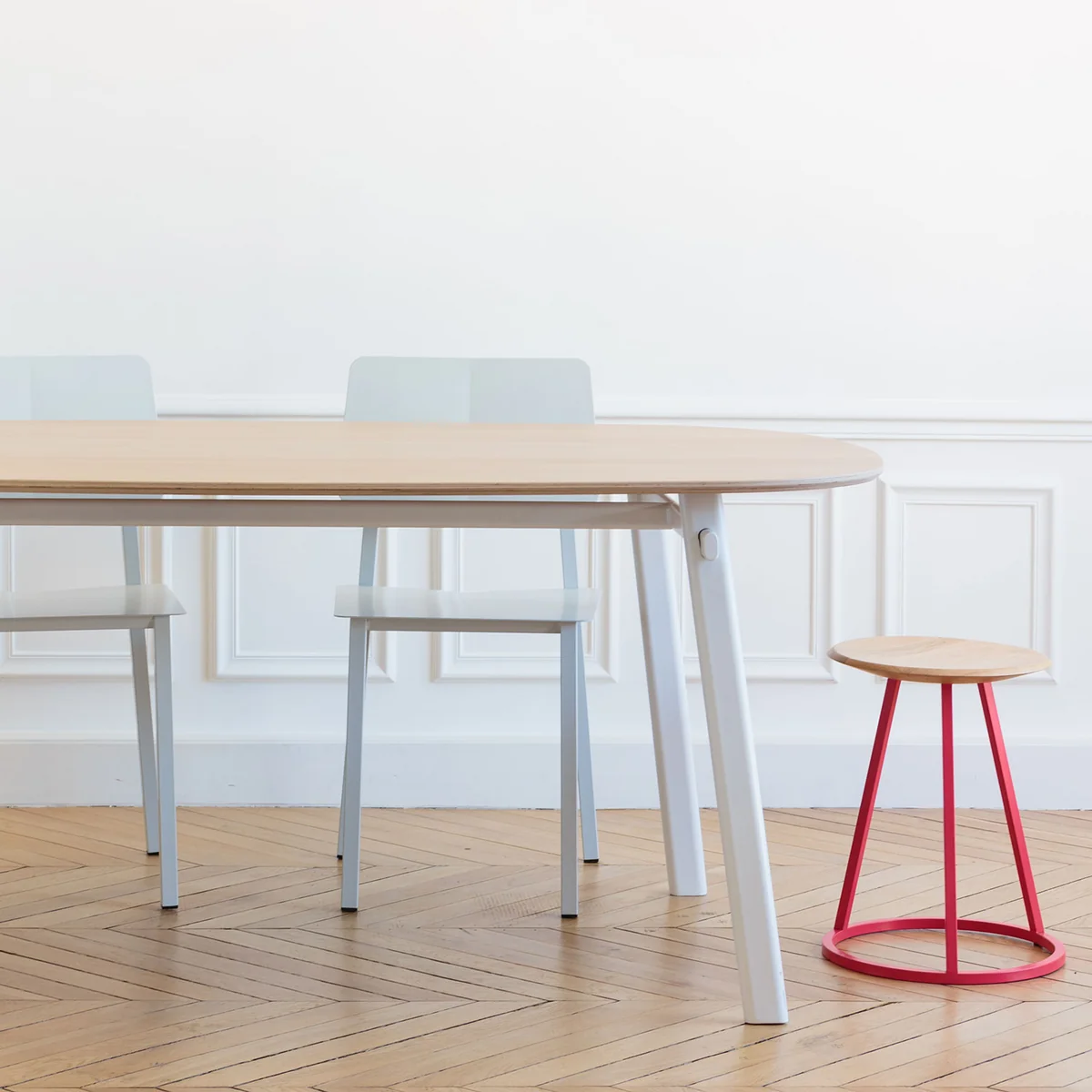 Le Petit Gustave tabouret de Charles Seuleusian pour Hartô est un tabouret intéressant qui, grâce à la combinaison des matériaux bois et métal laqué mat en différentes couleurs, s'adapte à tous les espaces et les complète.