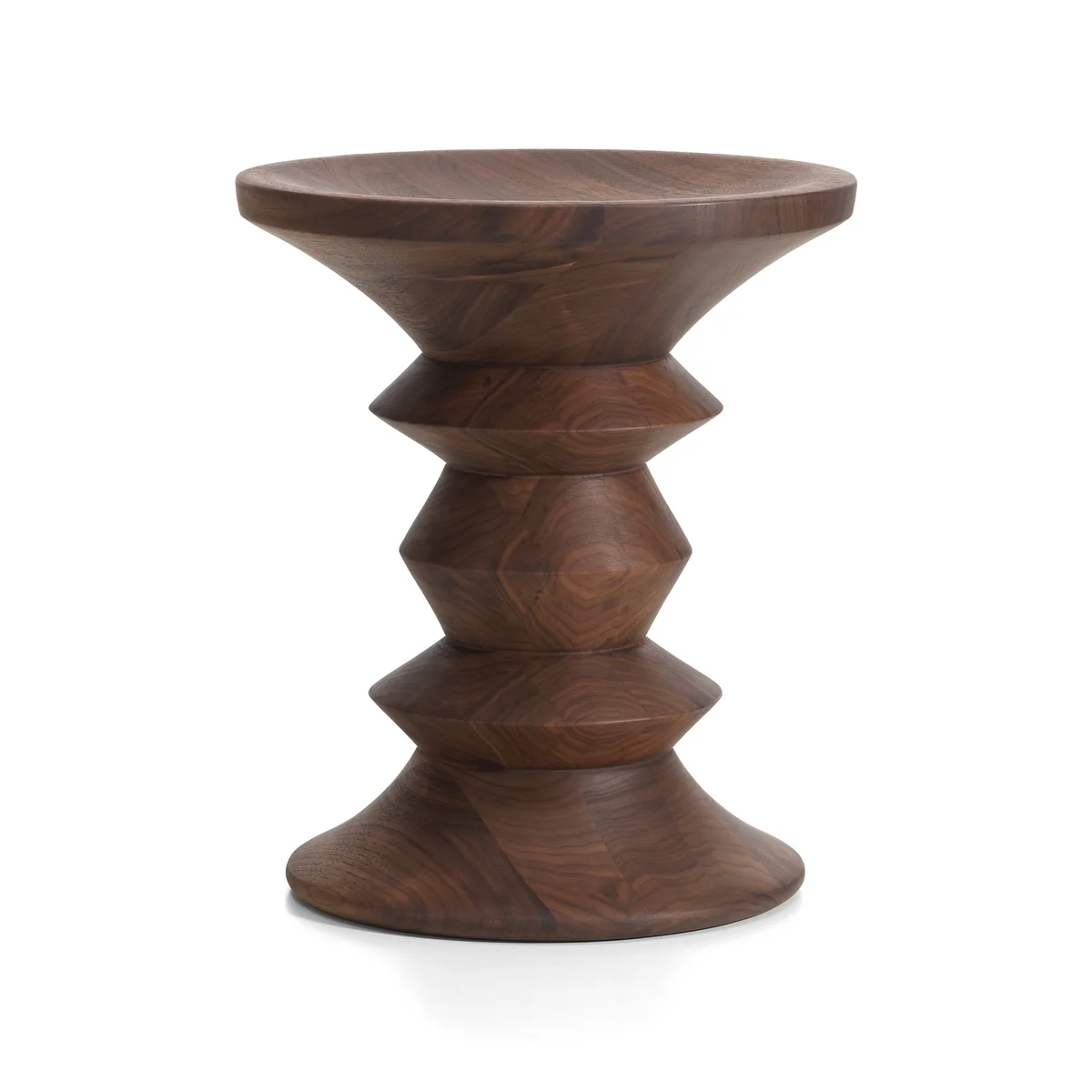 Le tabouret Eames a été conçu en 1960 par Charles & Ray Eames. Le tabouret est disponible en trois modèles. Les modèles se distingués par leurs différents profils dans la section centrale. Chaque tabouret est composé de bois de noyer massif, stratifié, collé et est clairement peint. Le tabourets tournés peuvent être aussi utilisés - au choix - comme table d’appoint.