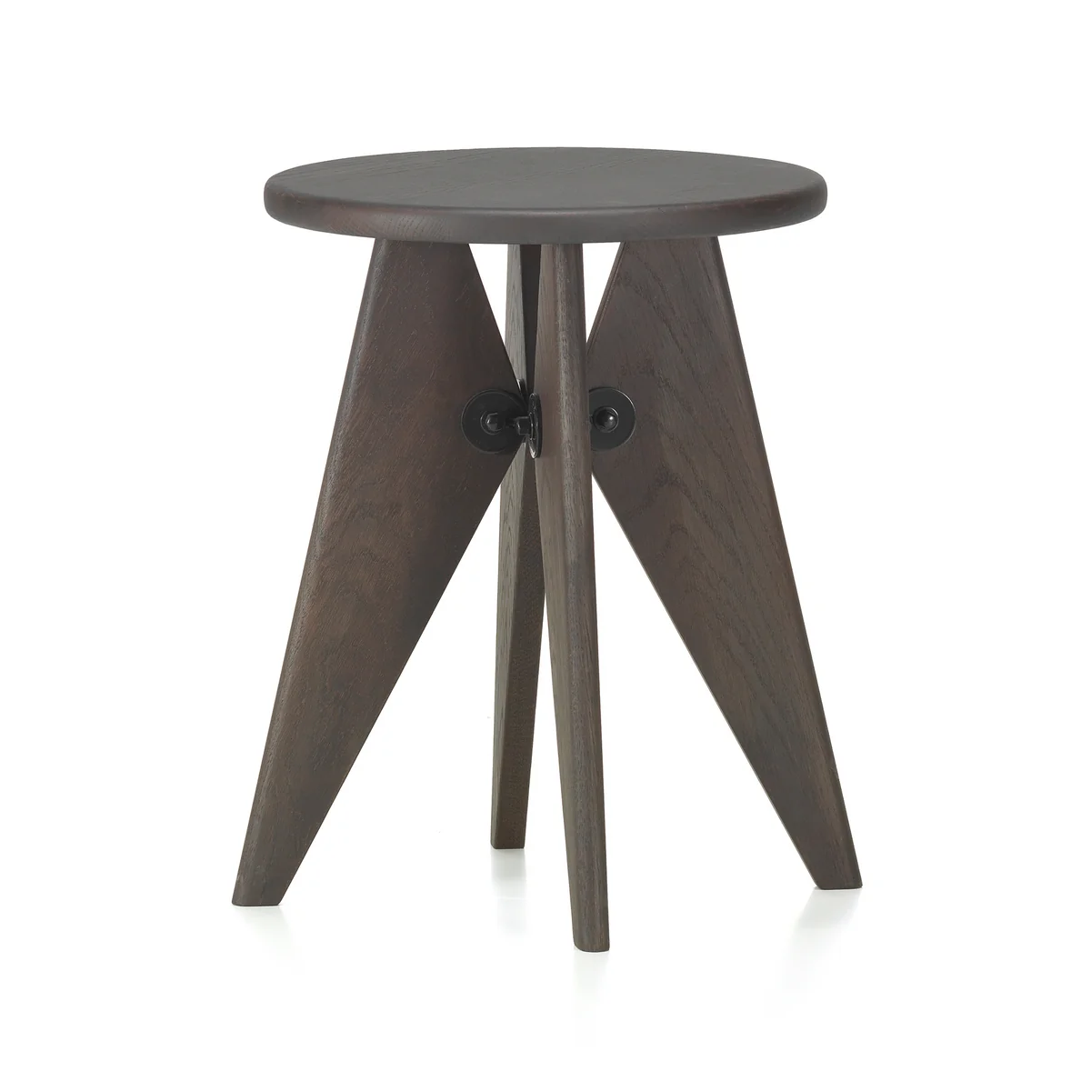 Tabouret Solvay est un tabouret simple et robuste en bois massif, dont la main de conception est visible au premier coup d'œil : Jean Prouvé l'a conçu de manière typiquement constructive. Grâce à son assise plane, le Tabouret Solvay peut également être utilisé comme petite table d'appoint. Cette pièce de designer est fabriquée en chêne massif traité à l'huile, tandis que l'élément d'assemblage en acier crée un contraste saisissant avec le bois.