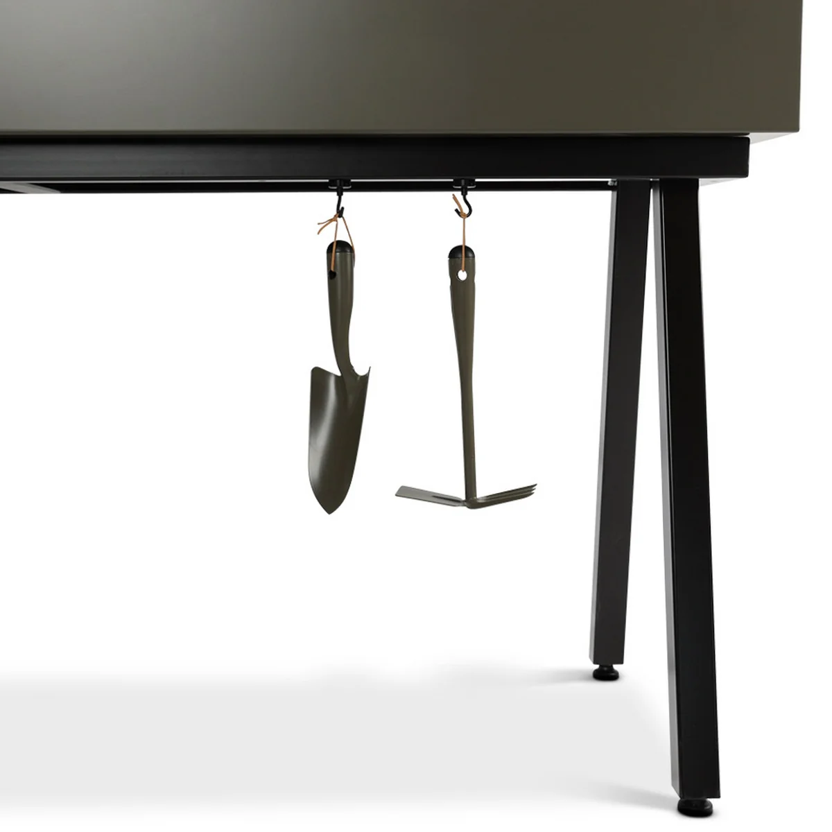 Le site Gardenworks La jardinière de Weltevree fait du jardinage une routine quotidienne naturelle et place les herbes et les légumes au centre de l'attention. Placée directement à côté de la porte, elle devient une extension pratique de la cuisine et invite à entretenir régulièrement les plantes. La hauteur de travail ergonomique de 93 cm permet de jardiner de manière détendue sans se pencher, tandis que le designer Marcel Sloots a conçu la station de manière à ce qu'elle soit à la fois fonctionnelle et esthétique.