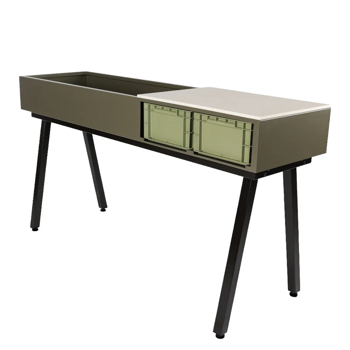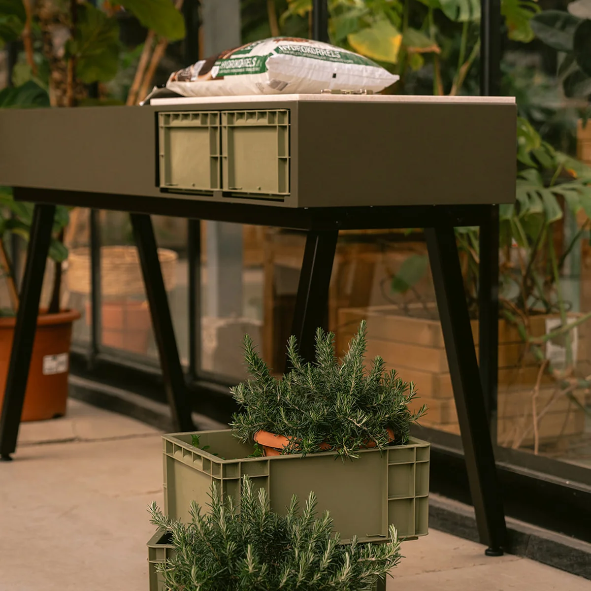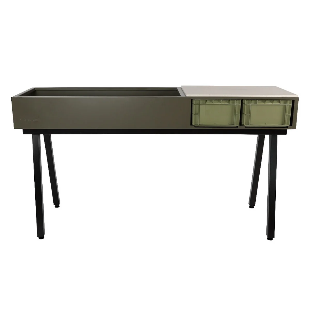 Grâce à son design élégant et délibéré, la station crée une symbiose harmonieuse. Gardenworks station est une combinaison harmonieuse de fonctionnalité et d'esthétique. Elle s'intègre dans les situations d'habitation les plus diverses - du balcon urbain au vaste jardin de campagne en passant par les espaces intérieurs - et les valorise visiblement. La station de plantation invite à vivre des moments de nature conscients : de la cuisine commune en plein air à l'observation des saisons. Fabriquée en acier galvanisé et peint par poudrage, en aluminium peint par poudrage et en pierre frittée, elle offre une qualité et une résistance durables. Elle a été conçue par le designer Marcel Sloots, qui allie systématiquement fonctionnalité et design.