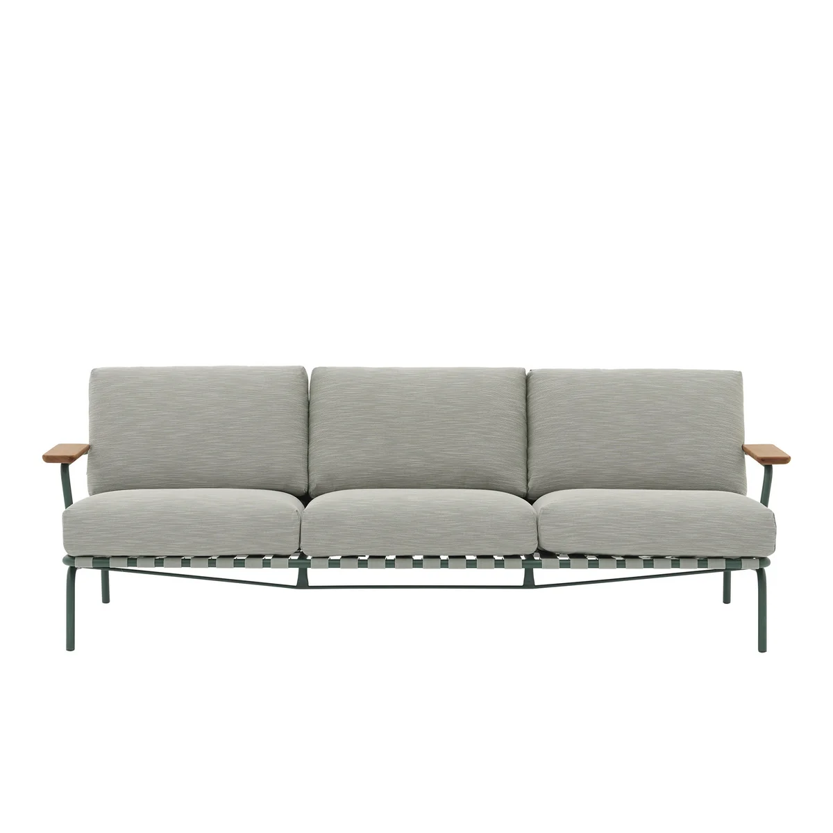 Le Settle Outdoor Canapé 3 places avec accoudoirs allie la légèreté du design scandinave à un confort d'assise généreux et à des matériaux durables. Inspiré par les lignes épurées des années 50 et 60, sa construction filigrane en tubes d'acier courbés crée une silhouette ouverte et élégante qui confère une touche de modernité à tout espace extérieur.