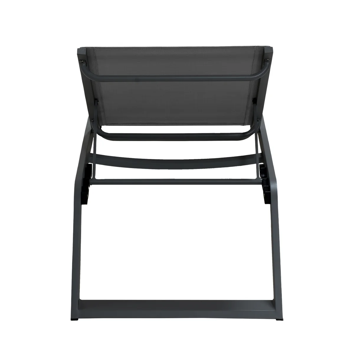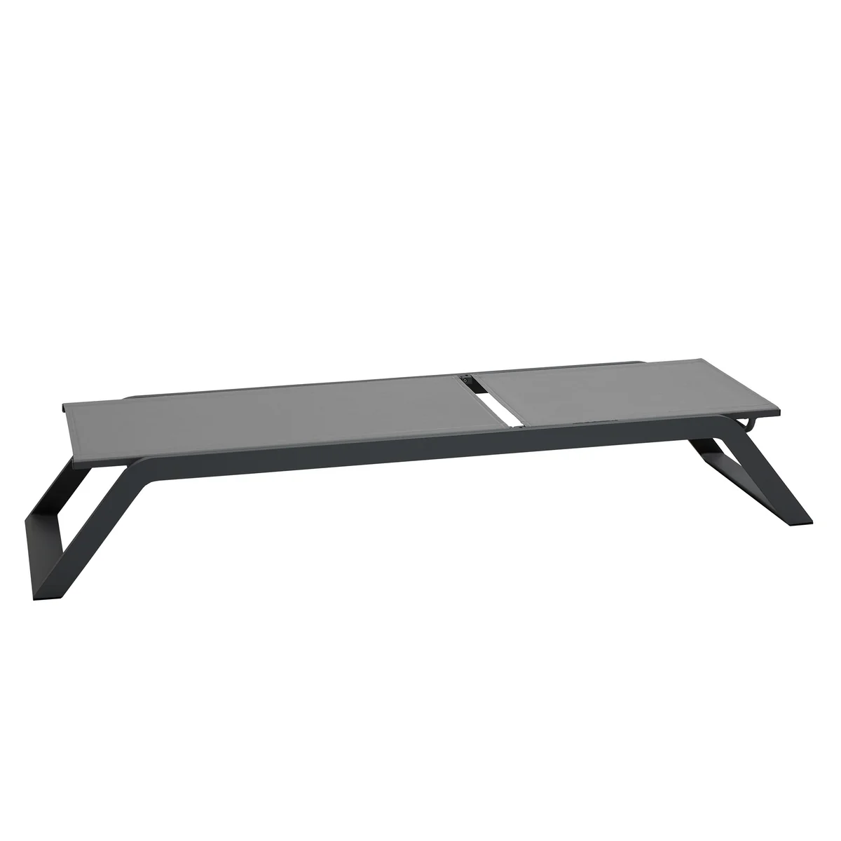 La chaise longue est en aluminium thermolaqué, à la fois léger et robuste. La surface de couchage est recouverte d'un Tex spécial Cane-line . Le matériau est enduit de polyester et donc parfaitement protégé de la pluie et des rayons UV.