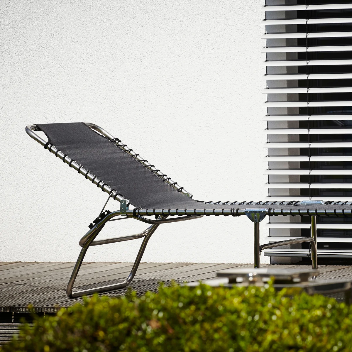 Le dossier peut être réglé sur quatre positions différentes, de sorte que la chaise longue à trois pieds offre toujours la position assise préférée. Même dans la grande version, le Amigo la chaise longue est extrêmement stable sur ses trois pieds. Le cadre est en aluminium - il est donc stable et léger à la fois.