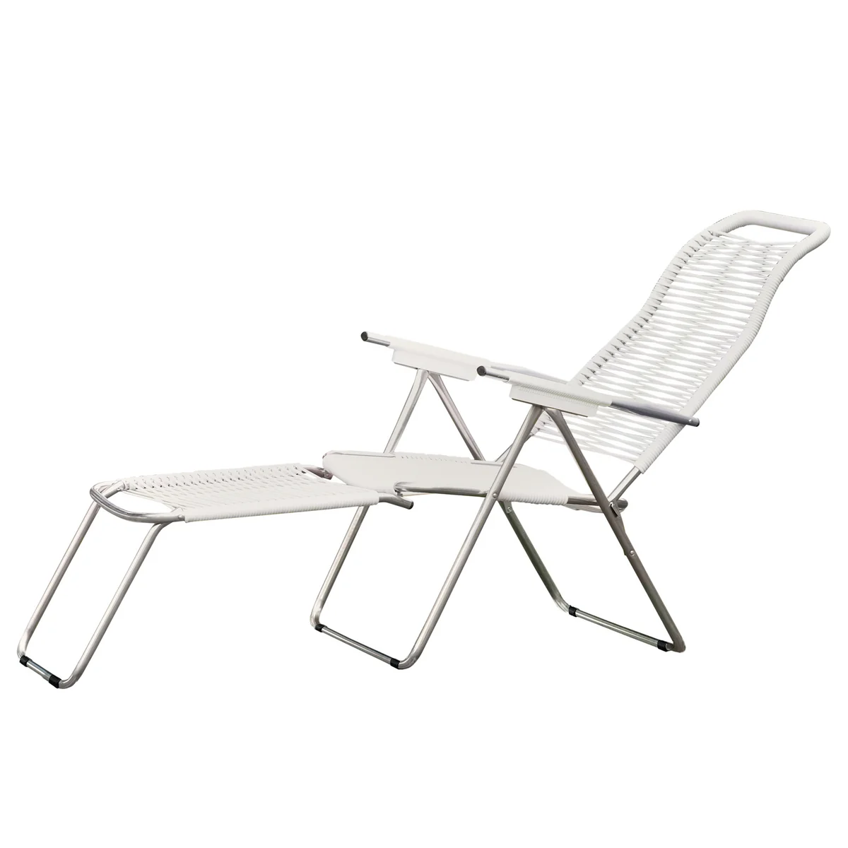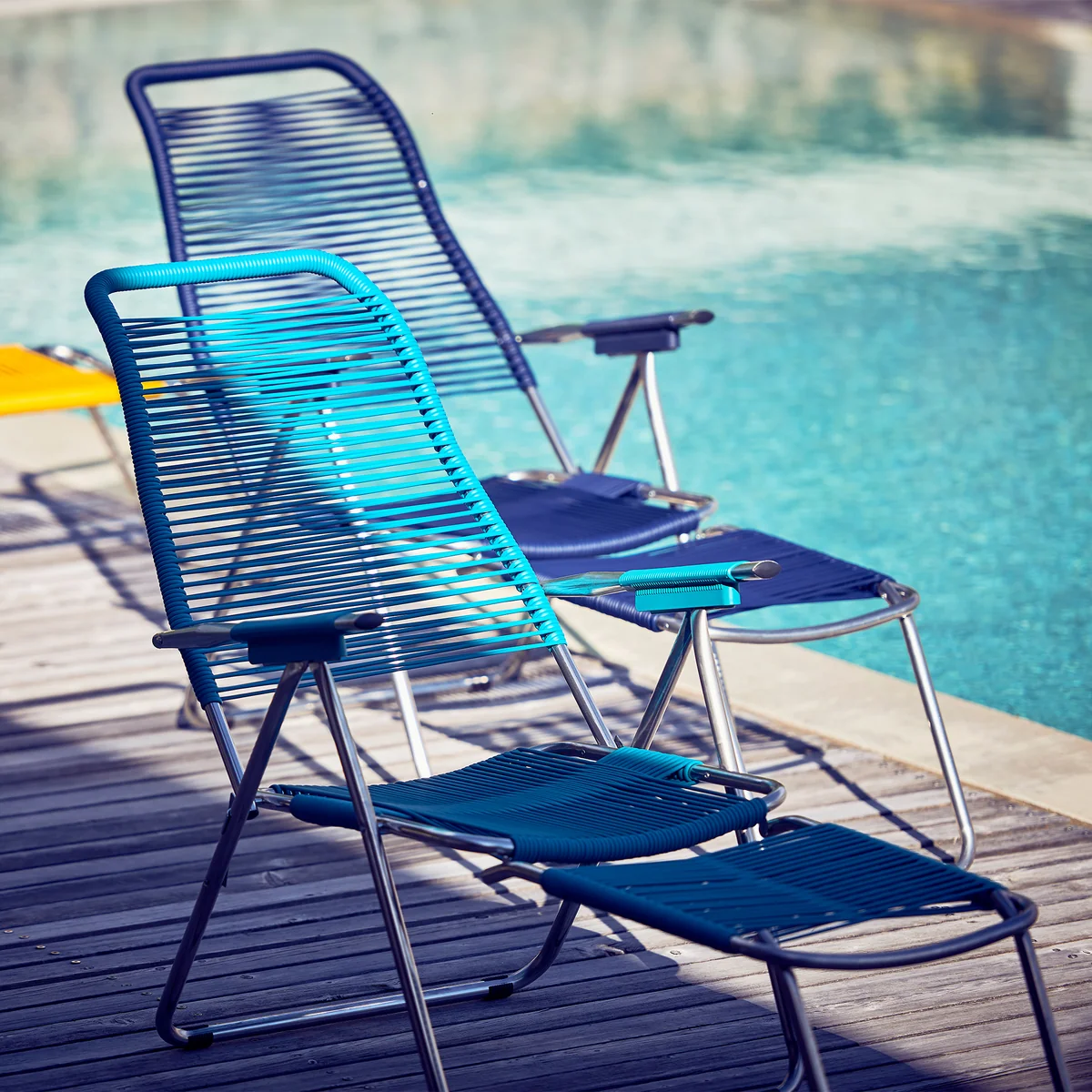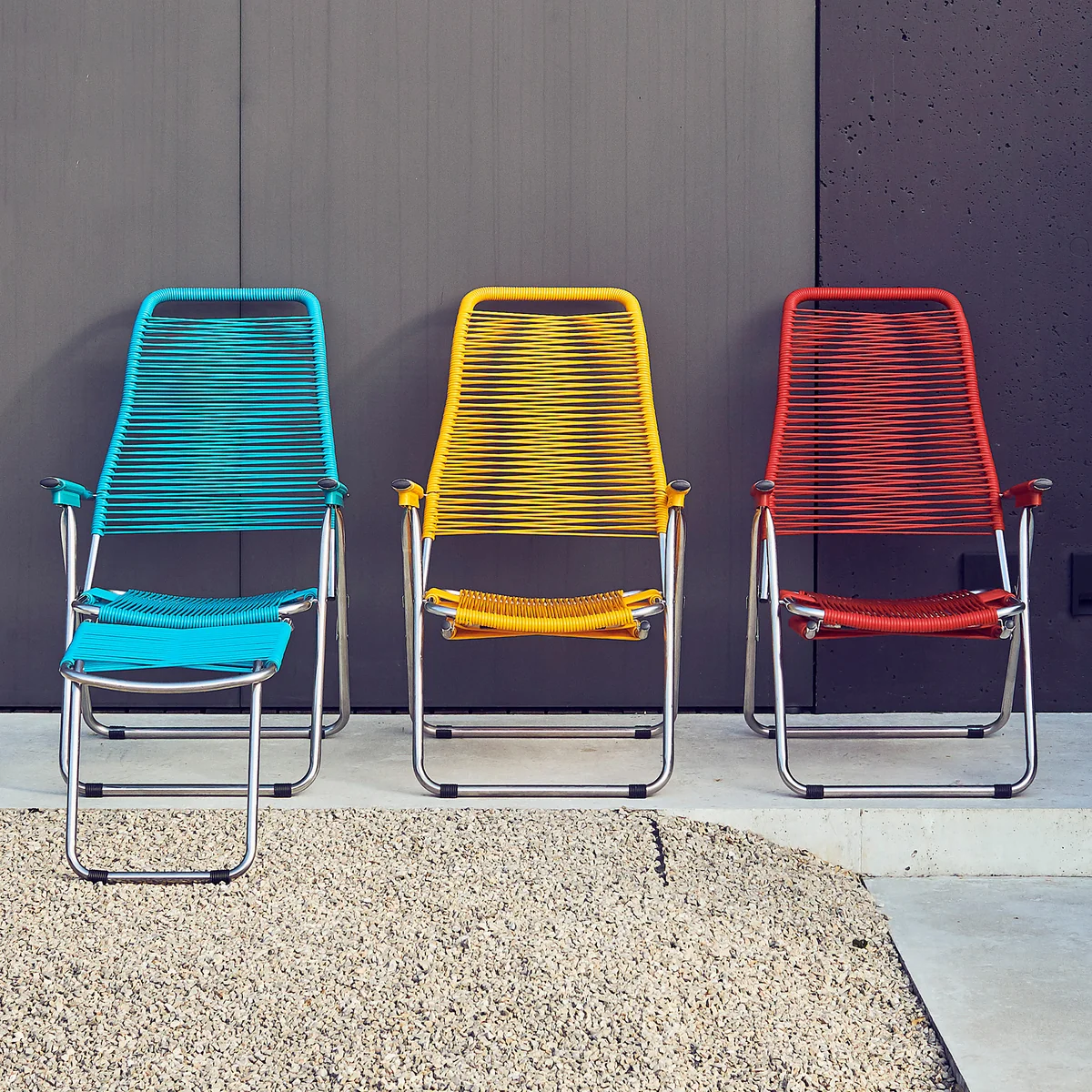 La chaise longue Spaghetti de Fiam convainc par sa structure en aluminium et son laçage en bande PVC en Spaghetti forme. Le design date des années 1980 et est non seulement intemporel et moderne, mais aussi extrêmement confortable.