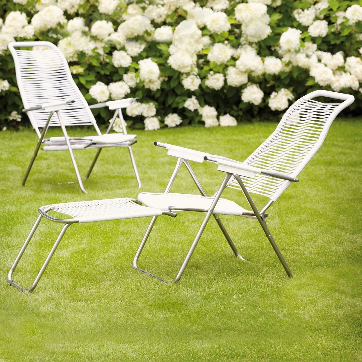 Les côtés et les accoudoirs ergonomiques assurent un confort de couchage maximal et invitent à s'attarder et à se détendre dans son propre jardin ou sur sa terrasse. La chaise longue est équipée d'une surface de couchage généreuse et reste en même temps compacte, car le repose-pieds peut être rabattu à volonté sous l'assise. Une fois le dossier relevé, la chaise longue se transforme en fauteuil confortable. En général, la chaise longue est réglable sur cinq niveaux.
