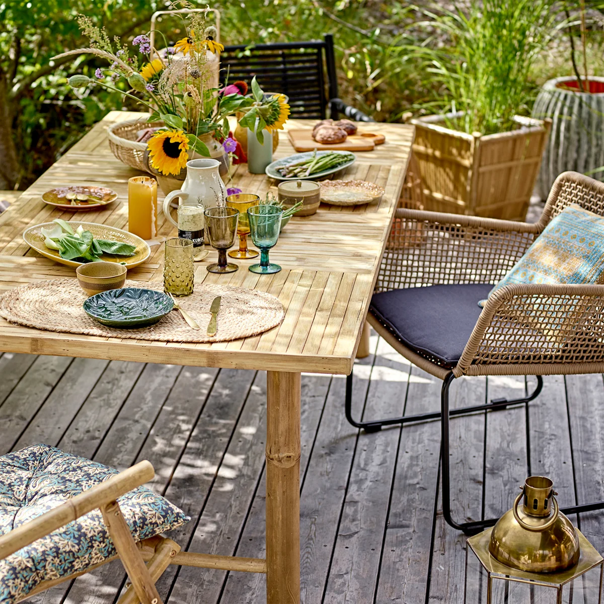 Le Mundo Outdoor chaise avec accoudoirs du fabricant danois Bloomingville est une chaise d'une beauté exceptionnelle. Les pieds sont fabriqués en métal noir revêtu par poudre. L'assise est en corde de polyester tressée. Les housses de coussin de la Mundo accoudoirs sont fabriquées en polyester. Pour prolonger la tenue des couleurs du tissu, la chaise doit être protégée de la lumière directe du soleil.