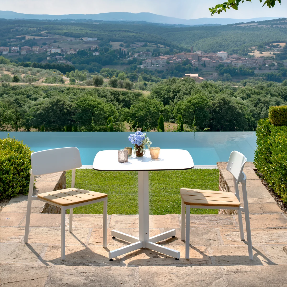 La chaise Outdoor chaise du fabricant italien Emu fait partie de la collection moderne Shine collection du designer Arik Levy. La chaise est en aluminium et enthousiasme par sa sensation de légèreté aérienne et de confort idéal. Les chaises sont empilables et brillent par leur combinaison intéressante d'une structure en aluminium et d'une assise en teck 100% certifié FSC.
