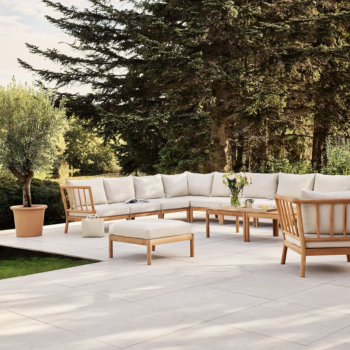 La chaise modulaire Skagerak Tradition Outdoor Lounge Chair, conçue par Povl B. Eskildsen pour Fritz Hansen, apporte la simplicité et la fonctionnalité du design danois à l'extérieur.