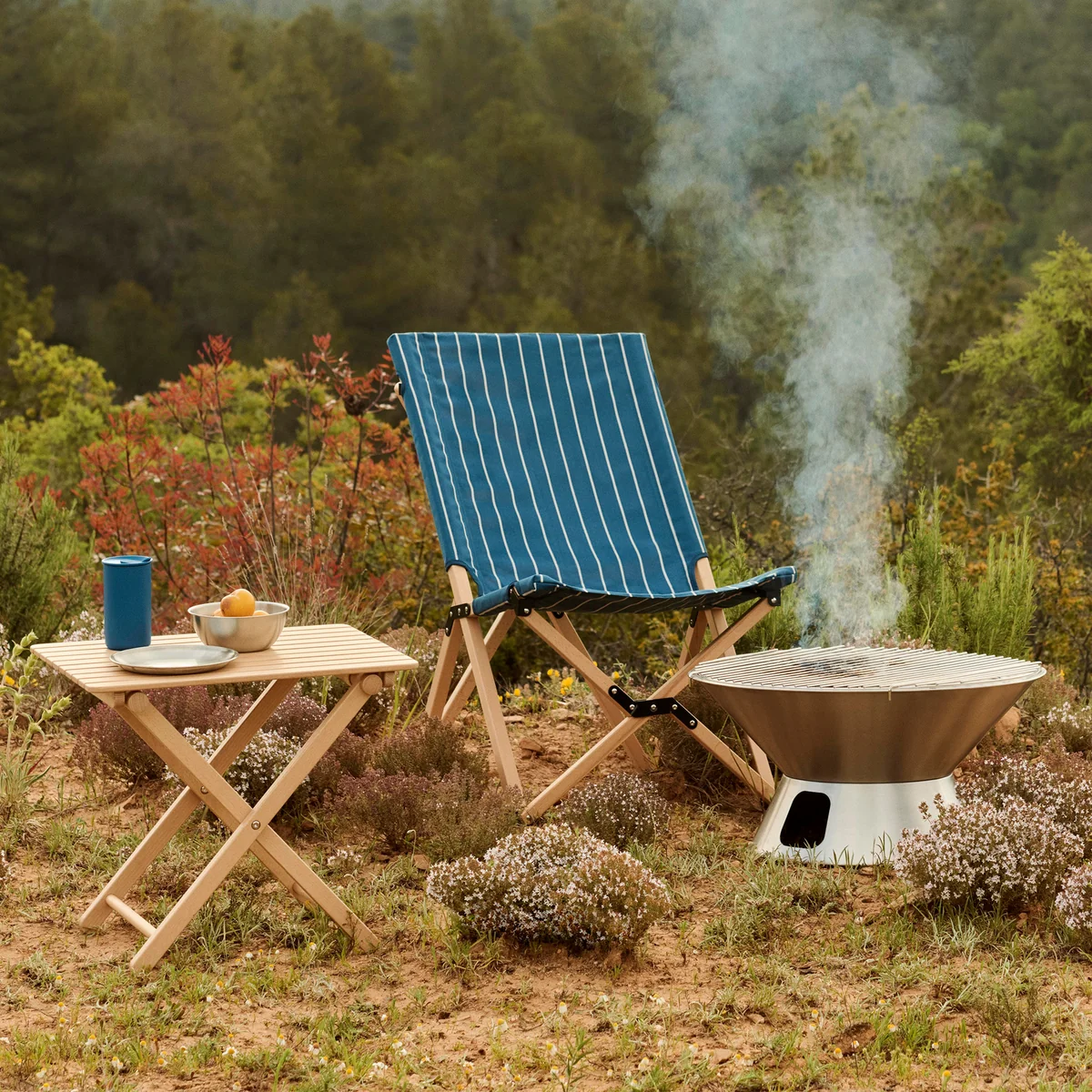 La chaise pliante Outdoor Market offre une solution d'assise flexible pour les moments de détente en plein air. La structure légère en bois de hêtre est complétée par une assise rayée en polyester recyclé et associe des matériaux naturels à une aptitude fonctionnelle à l'extérieur. La chaise se plie et se transporte facilement - idéale pour le jardin, la plage ou le camping. Pour un rangement et un transport confortables, la chaise pliante est livrée dans un sac en tissu assorti.