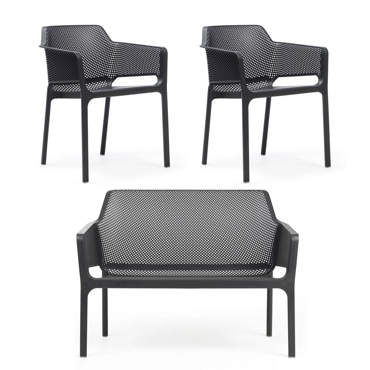 La chaise à accoudoirs Net de l'entreprise familiale italienne Nardi s'intègre parfaitement dans le jardin, sur la terrasse ou le balcon et assure le confort grâce à son assise généreuse et à ses accoudoirs. Le fauteuil est fabriqué en fibre de verre-polypropylène teinté dans la masse et recyclable, qui se caractérise par sa légèreté, sa résistance aux UV et aux intempéries.
