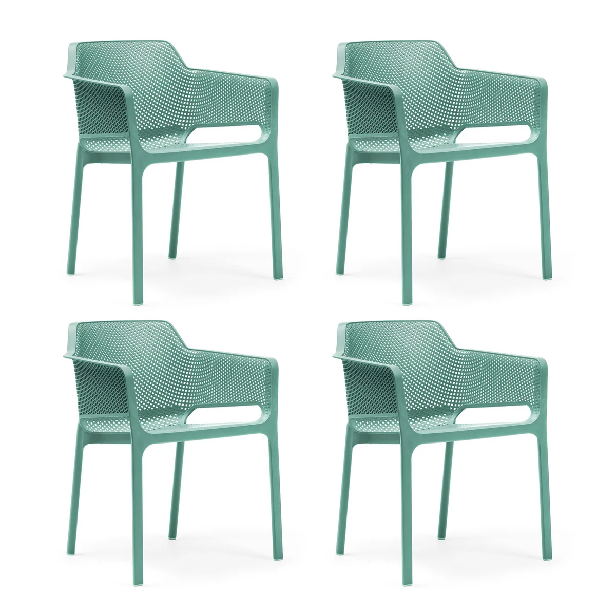 La chaise à accoudoirs Net conçue par Raffaello Galiotto est disponible en différentes couleurs à effet mat, qui se combinent parfaitement entre elles ainsi qu'avec d'autres meubles de jardin de Nardi . Les coussins assortis sont disponibles séparément.