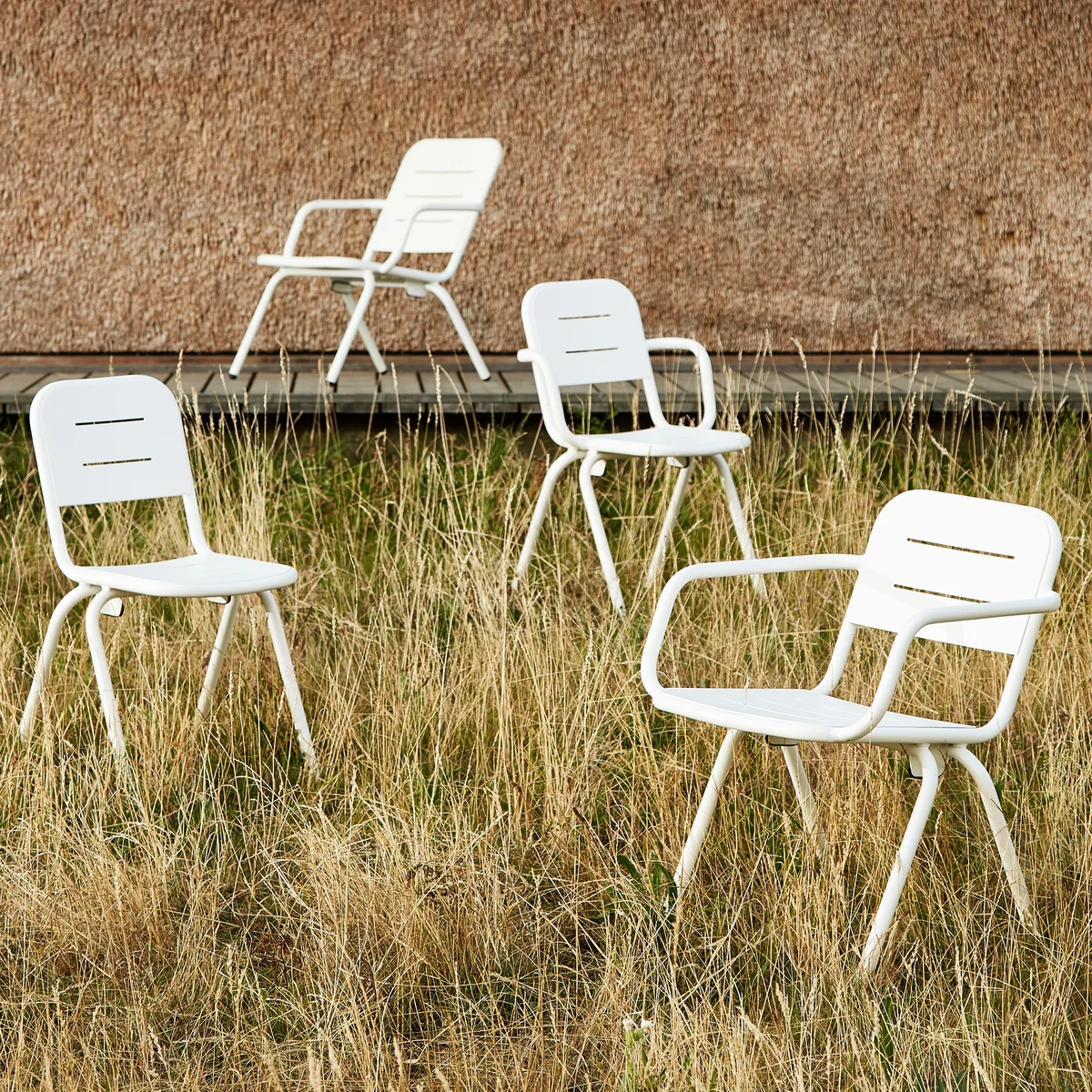 Avec les rainures allongées de l'assise et du dossier, Ray laisse passer les rayons du soleil, créant de belles ombres sur le plancher sous-jacent. Les rainures élégantes confèrent au design une certaine légèreté, permettant au vent de passer à travers et à la pluie de s'écouler rapidement. Disponible en différentes couleurs, la chaise empilable s'intègre parfaitement dans n'importe quelle ambiance.