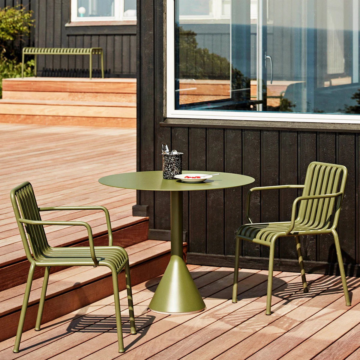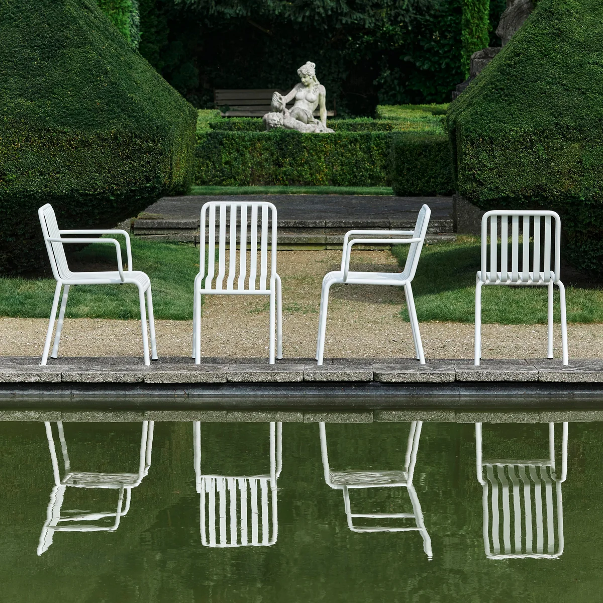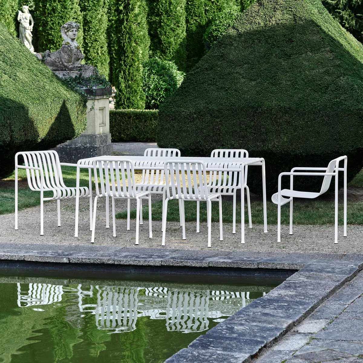 La chaise Palissade chaise avec accoudoirs allie parfaitement les caractéristiques fonctionnelles et esthétiques, ce qui en fait un meuble optimal pour l'extérieur. La chaise a été conçue par les frères designers Ronan et Erwan Bouroullec, qui proposent avec leur idée une alternative aux meubles de jardin classiques en bois.