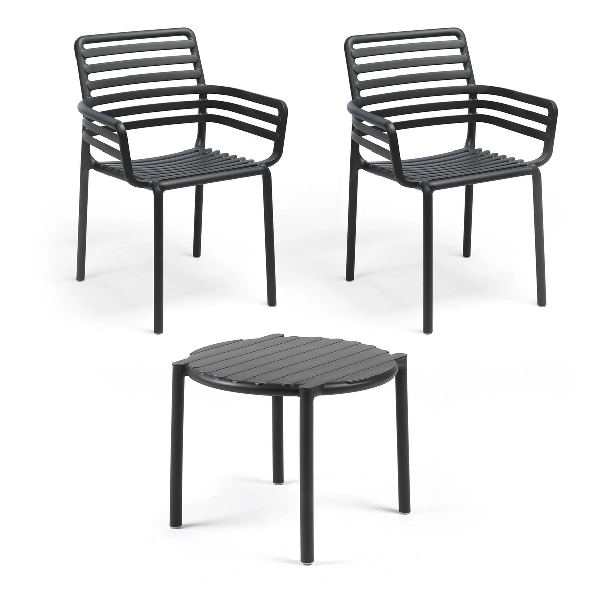 La table d'appoint Doga est dotée d'un nouveau thème contemporain en forme de douves, qui s'accorde parfaitement avec les chaises d'extérieur de Nardi . La petite table monobloc en plastique renforcé de verre dispose d'un plateau rond au design frais et léger. La table est maniable, empilable et facile à désinfecter. Elle est entièrement recyclable.