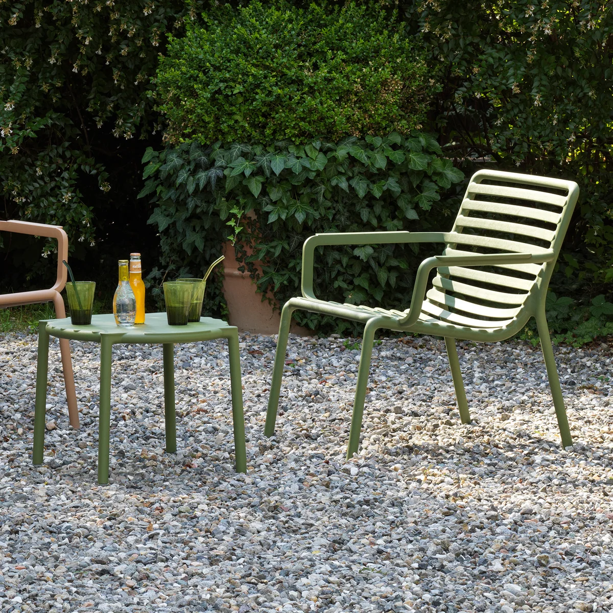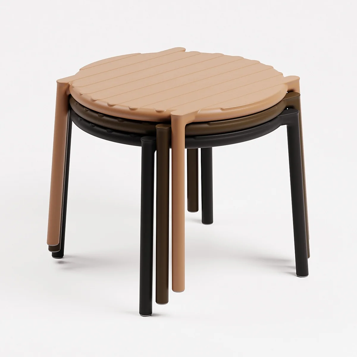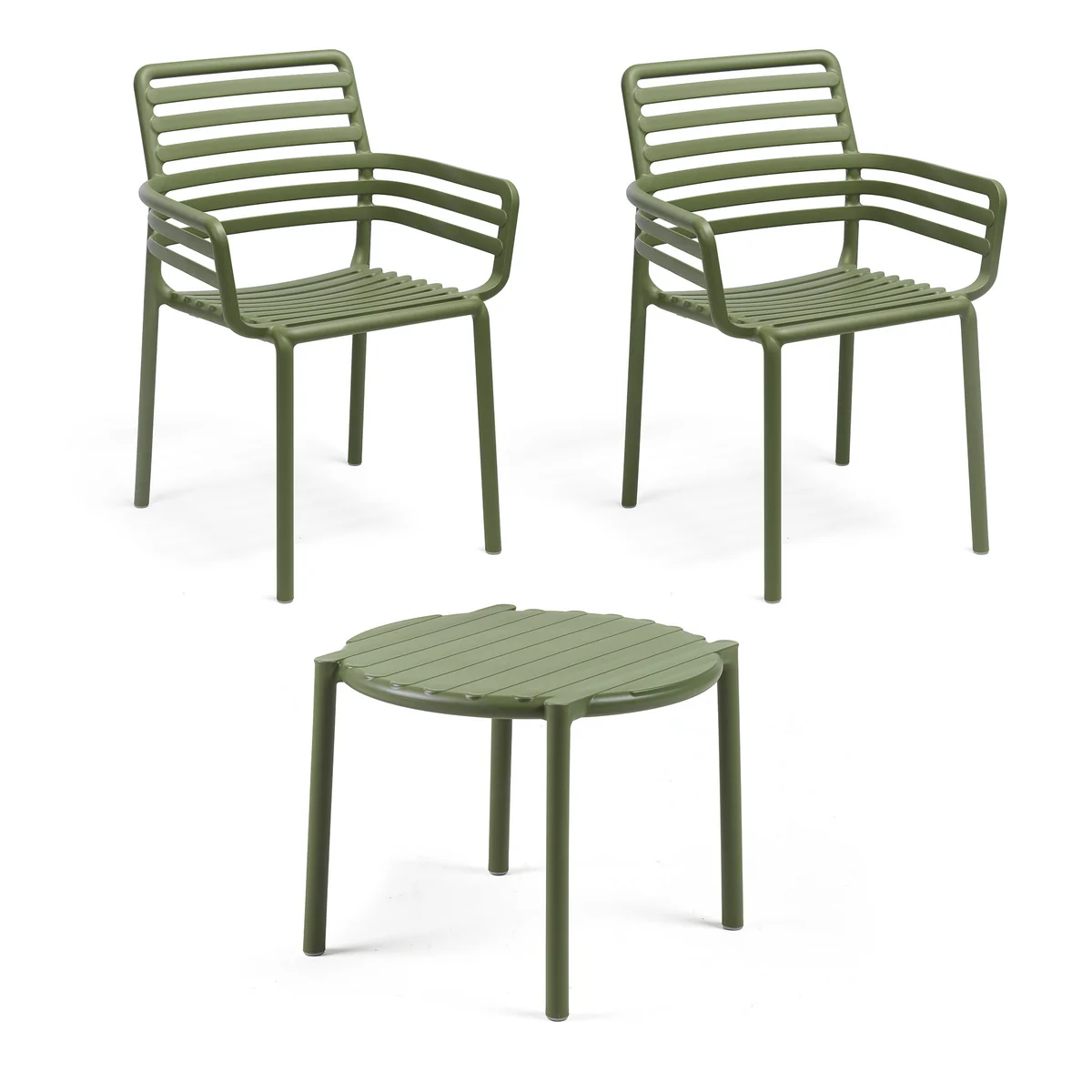 La table d'appoint Doga est dotée d'un nouveau thème contemporain en forme de douves, qui s'accorde parfaitement avec les chaises d'extérieur de Nardi . La petite table monobloc en plastique renforcé de verre dispose d'un plateau rond au design frais et léger. La table est maniable, empilable et facile à désinfecter. Elle est entièrement recyclable.