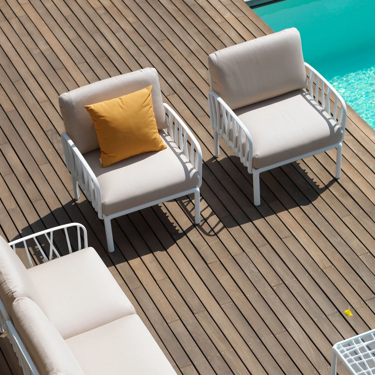 Le Komodo canapé modulaire de Nardi est un merveilleux siège pour l'extérieur et peut être utilisé de manière polyvalente. La série se compose de différents modules centraux, latéraux et d'angle qui peuvent être combinés entre eux à volonté. Il est ainsi possible de créer un espace lounge en fonction de l'espace dont on a besoin et de ses goûts personnels.