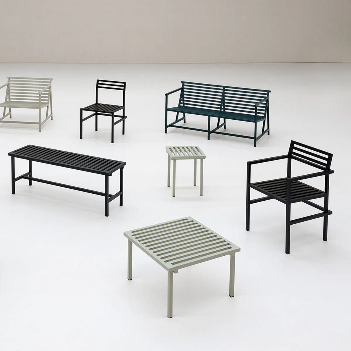 Le banc de jardin 19 Outdoors conçu par Butterfield Brothers pour le fabricant NINE séduit par son design unique et moderne. La collection '19 Outdoor' s'inspire du projet caritatif '19 Chairs' des designers. Le banc convient pour l'extérieur et est fabriqué en aluminium. Le matériau peut être recyclé avec peu d'énergie et réutilisé comme article recyclable - le processus de production complet est donc durable. Le banc de jardin est disponible en différentes couleurs.