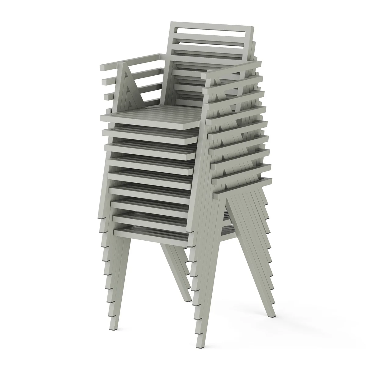 Le 19 Outdoors Stacking Armchair des Butterfield Brothers pour le fabricant NINE enthousiasme par son design unique et moderne. La collection '19 Outdoor' s'inspire du projet caritatif '19 Chairs' des designers. La chaise à accoudoirs convient pour l'extérieur et est fabriquée en aluminium. Le matériau peut être recyclé avec peu d'énergie et réutilisé comme article recyclable - le processus de production complet est donc durable. La Outdoor Stacking Armchair est disponible en set de deux et en différentes couleurs.